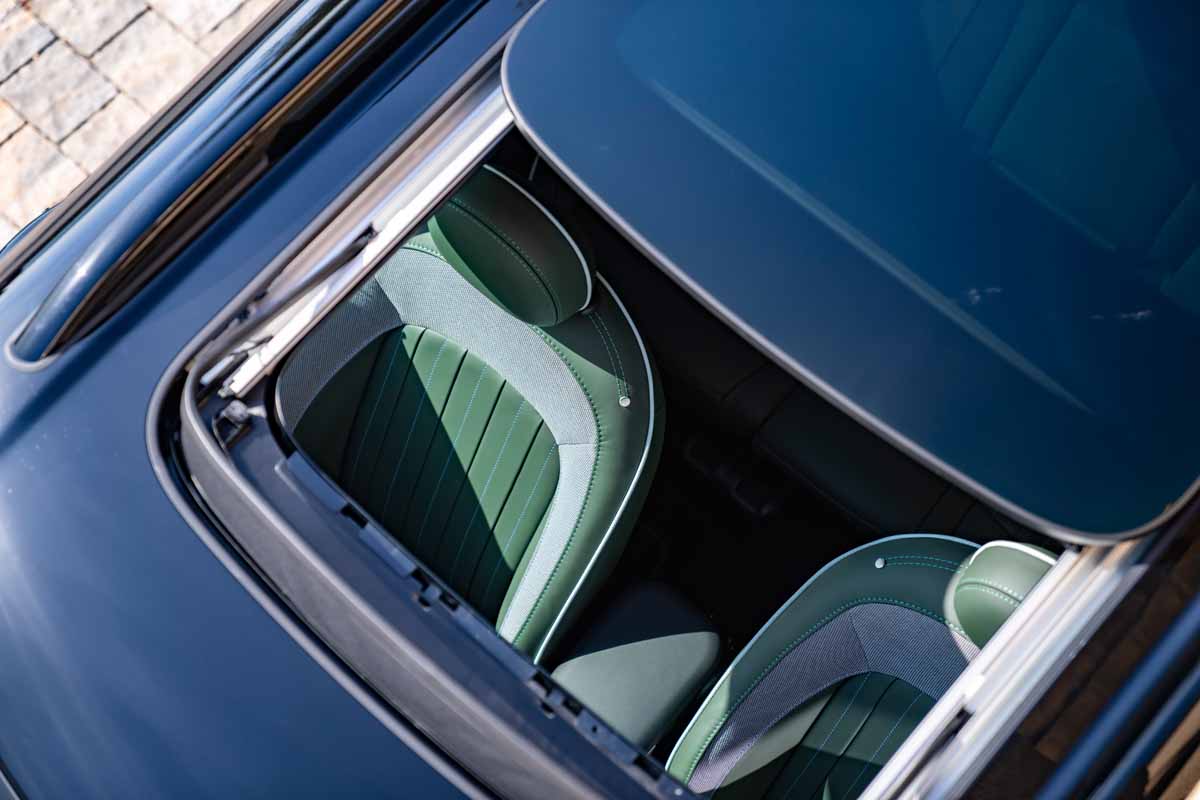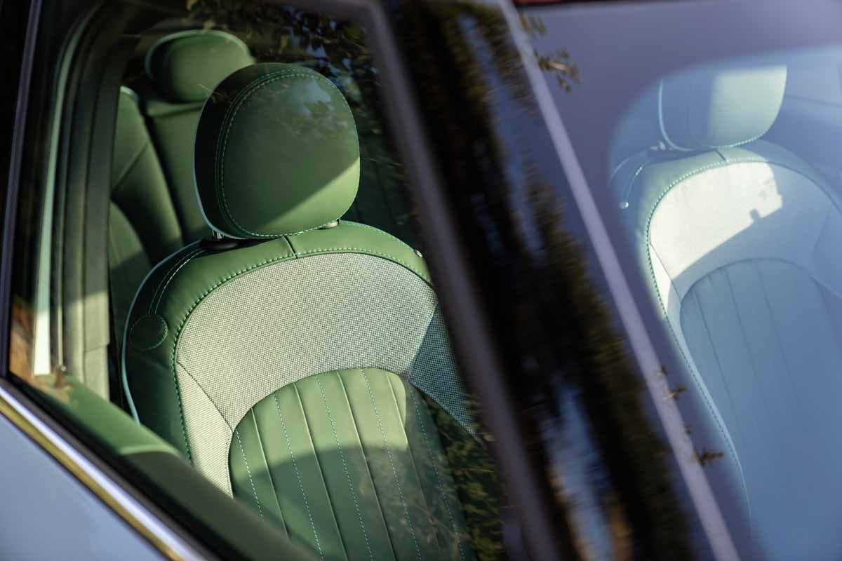 In the interior of the MINI Cooper S Countryman ALL4 in the Untamed Edition, nature-inspired shades of green and blue are the prevailing colours. The exclusive Highland Green is combined with blue and green contrast stitching on the surfaces of the MINI Yours Leather Lounge sports seats, with MINI Yours Leather Lounge Carbon Black available as an optional alternative. The characteristic graphic of the mountain landscape in the style of the door sill finishers likewise adorns the discreet pins in the outer area of the backrests, while the illuminated decorative trim in Frozen Bluestone bears the striking landscape pattern, too. An additional effect is achieved by the “UNTAMED” inscription which is visible in the car’s night design.