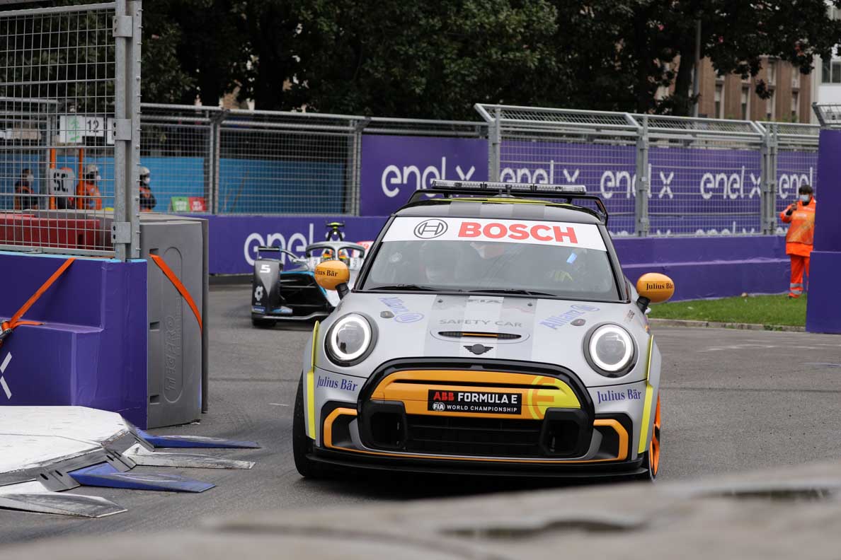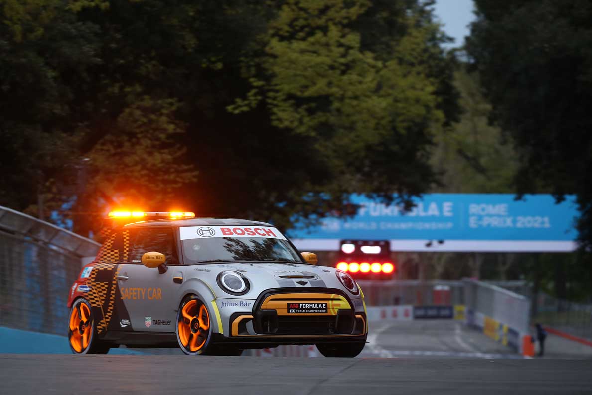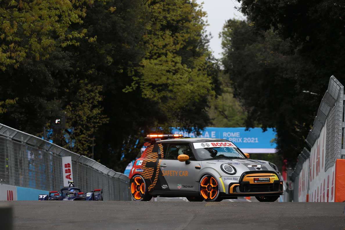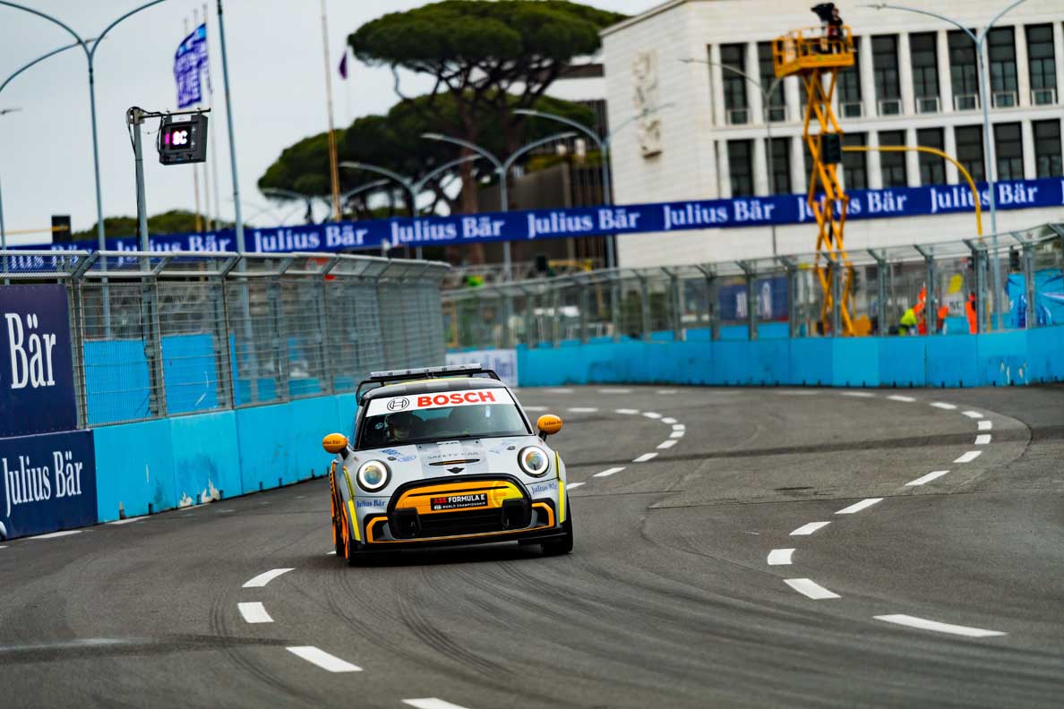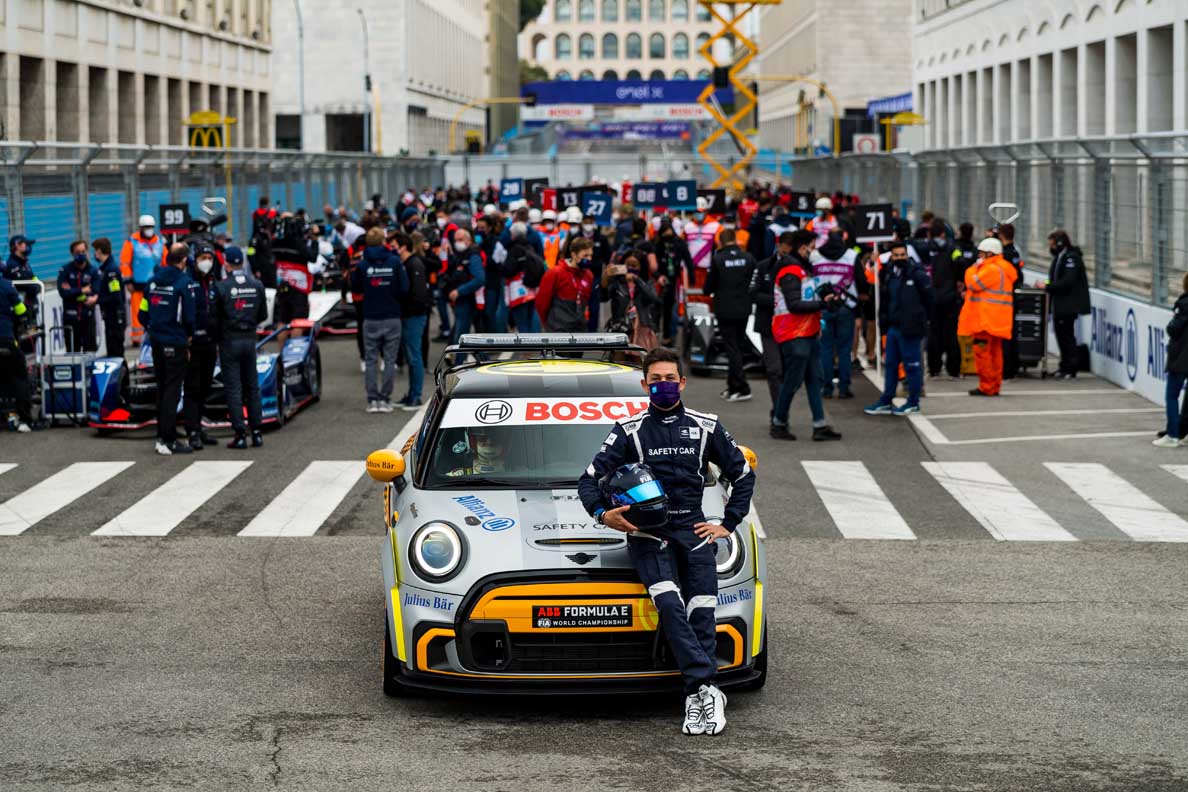 In light of adverse weather conditions and turbulent races with several incidents, the new FIA Formula E safety car was called into action four times on its debut in Rome. Both races were started behind the MINI Electric Pacesetter inspired by JCW, and the race on Saturday even ended behind the safety car after incidents shortly before the finish. The incidents gave Correia plenty of opportunities to get to know the car.