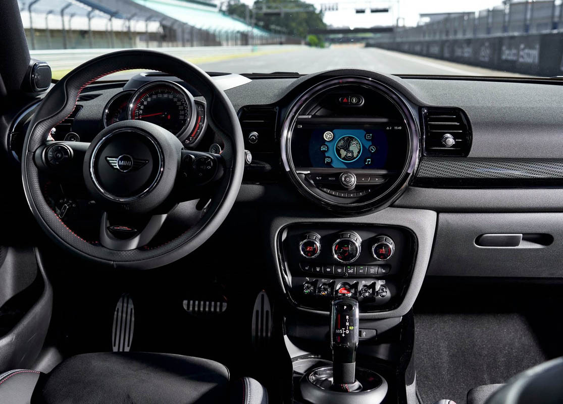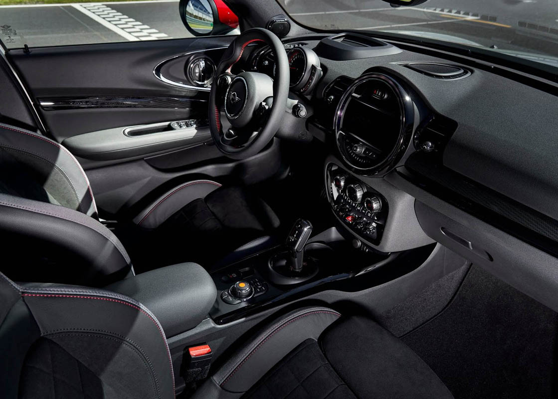 The standard equipment of the MINI John Cooper Works Clubman not only includes an emphatically sporty flair in the interior, but also a multifunctional instrument display on the steering column as well as a new operating system with which vehicle functions, audio programme, communication, navigation and apps can be controlled particularly quickly and intuitively.