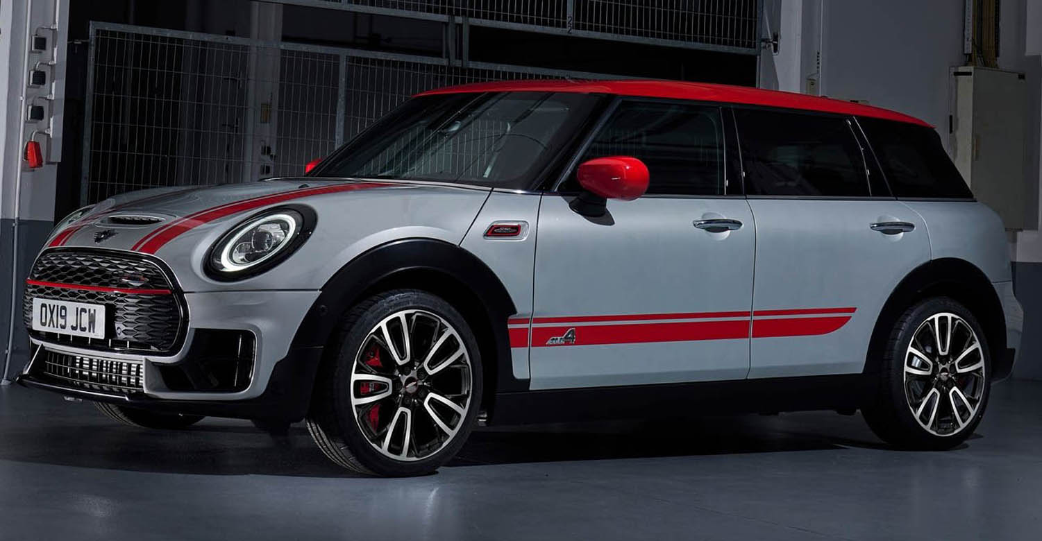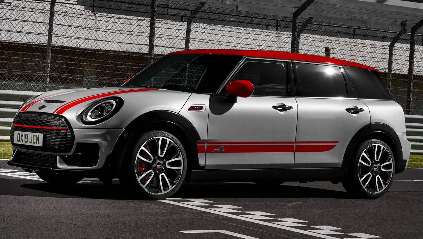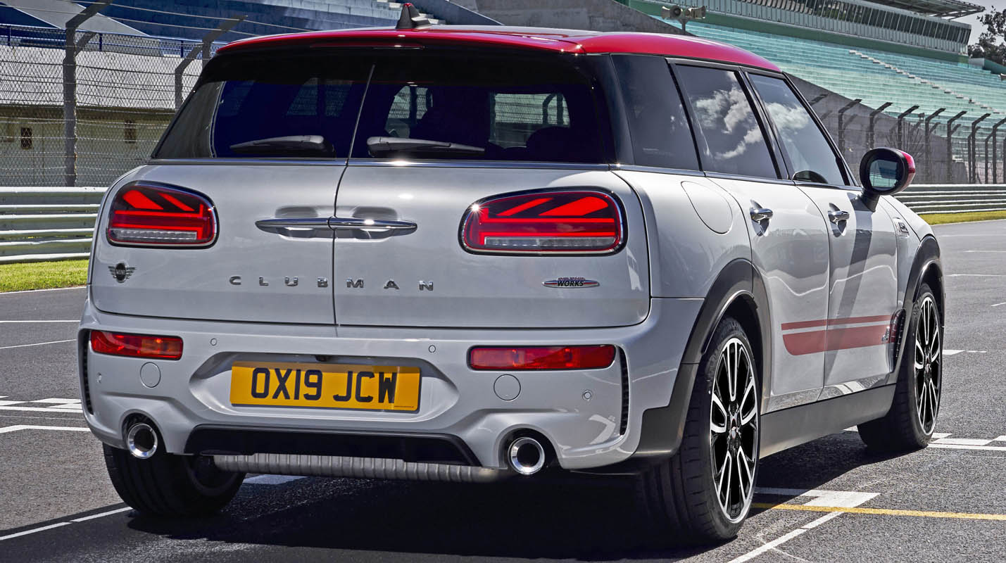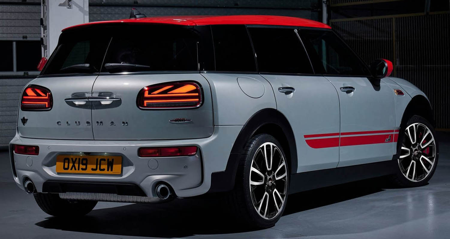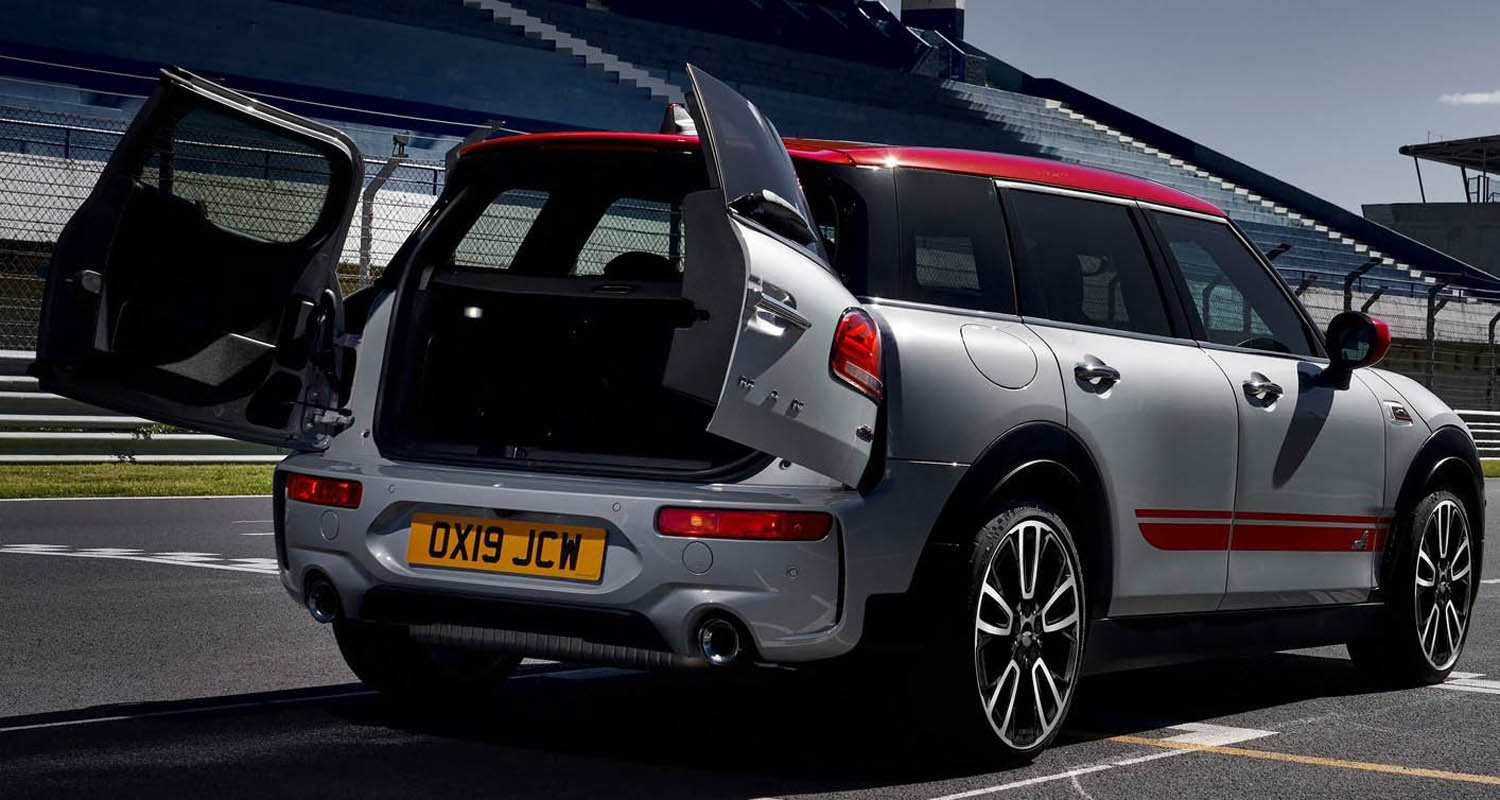 Other model-specific accentuations in the exterior include the optional contrast paintwork in red for the roof and the mirror caps, an individual design for the side scuttles by the additional indicators, and the John Cooper Works logo in the radiator grille and tailgate. The central air inlet of both models has a honeycomb pattern structure. The inlet of the MINI John Cooper Works Countryman also has a red surround. A red cross-member subdivides the newly designed radiator grille of the new MINI John Cooper Works Clubman. Its headlamps, rear lights and rear apron also display the new design of the latest model revision for the MINI Clubman.
