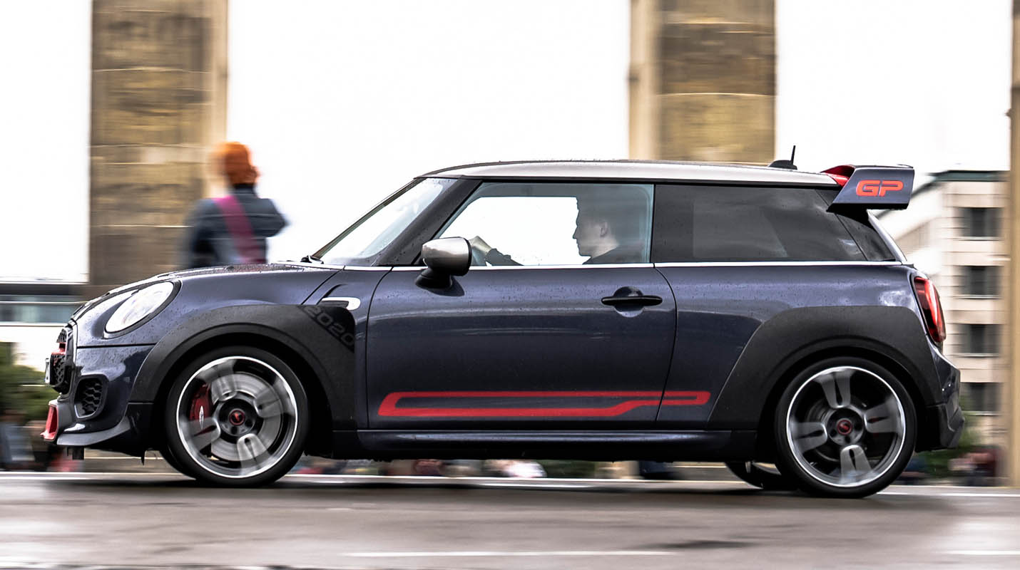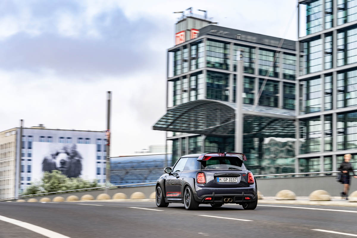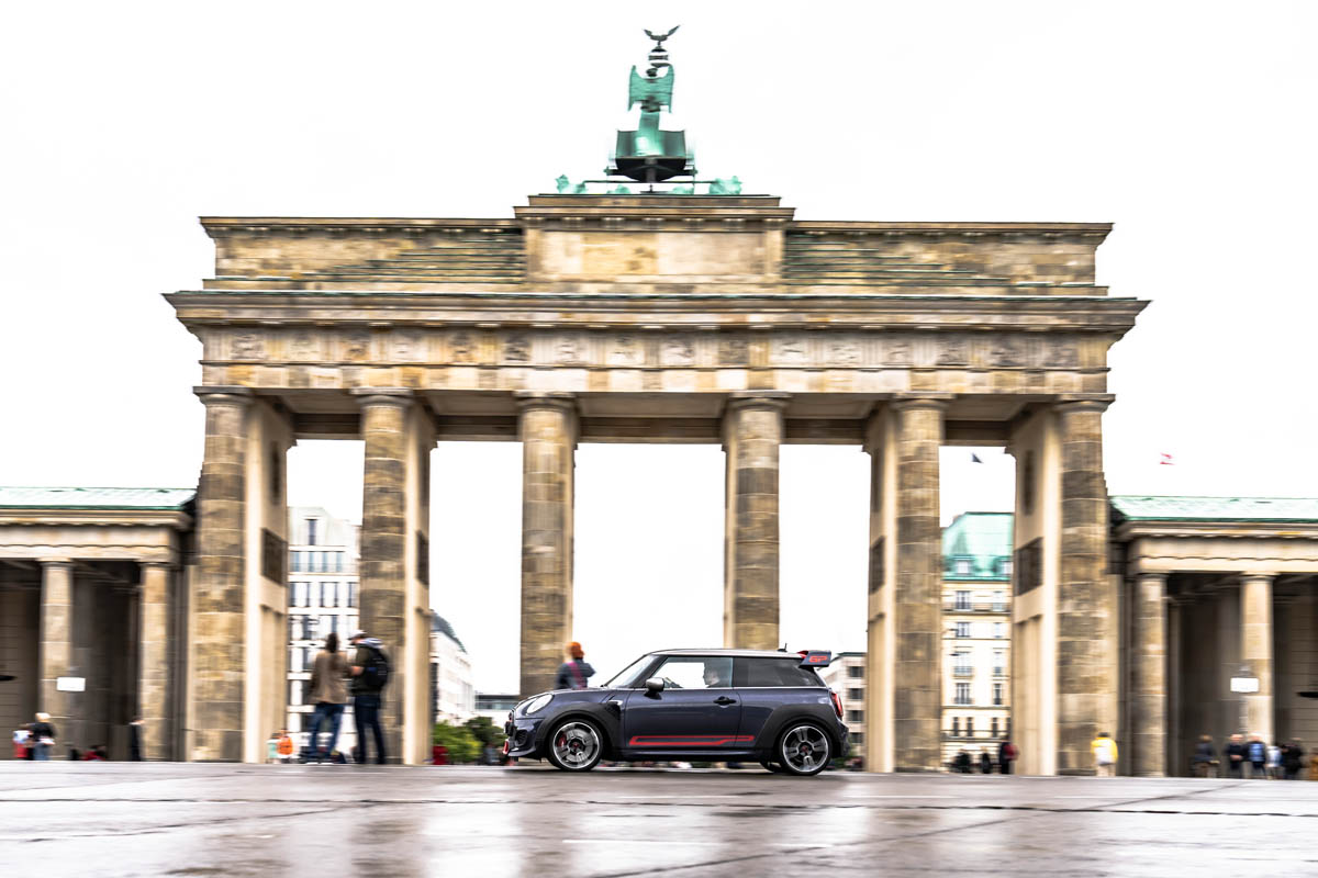 The atmosphere crackles – something is in the air of Berlin. On the Glienicke Bridge, passers-by are amazed. Agent exchange? No, there was something like that before, actually, only three times between 1962 and 1986. Now it is the MINI John Cooper Works GP (fuel consumption combined: 7.3 l/100 km; CO2 emissions combined: 167 g/km according to WLTP) that catches the eye. The fastest MINI ever built is also rarely seen. The 225 kW/306 hp model was built in a small series of only 3000 units.