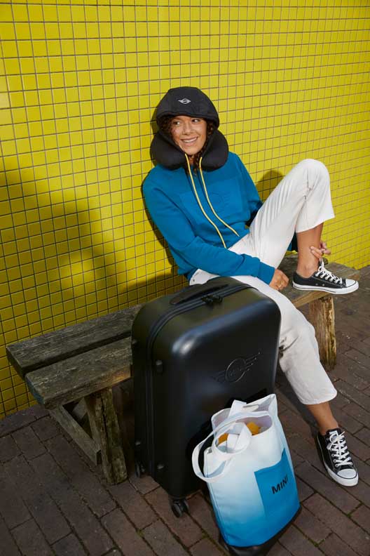 The MINI Travel Pillow (RRP 19.00 €), which is being offered for the first time, is also recommended as a practical travel companion, providing more comfort not only on longer journeys. The inflatable pillow is easy to store and has a washable cover made of soft cotton jersey.