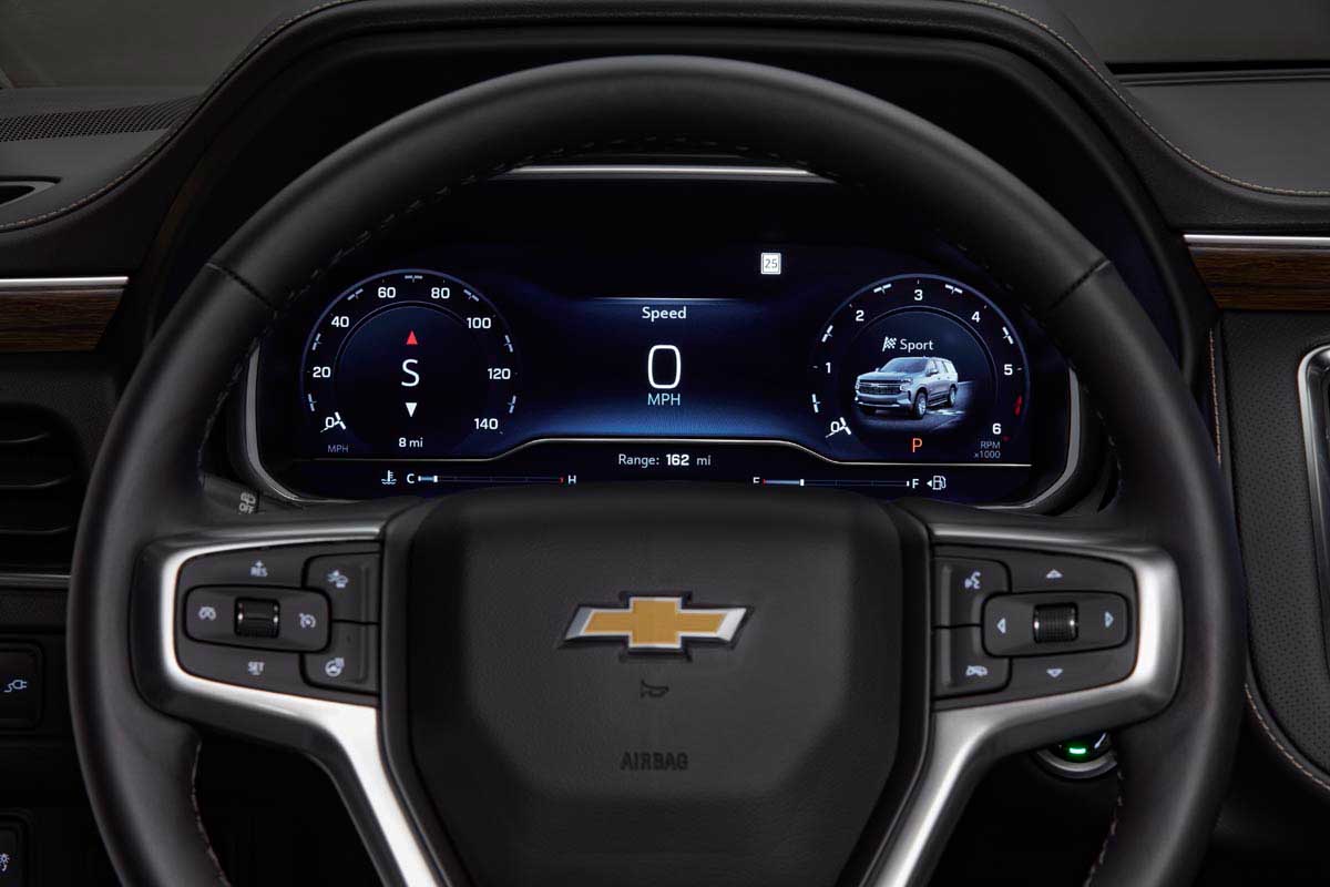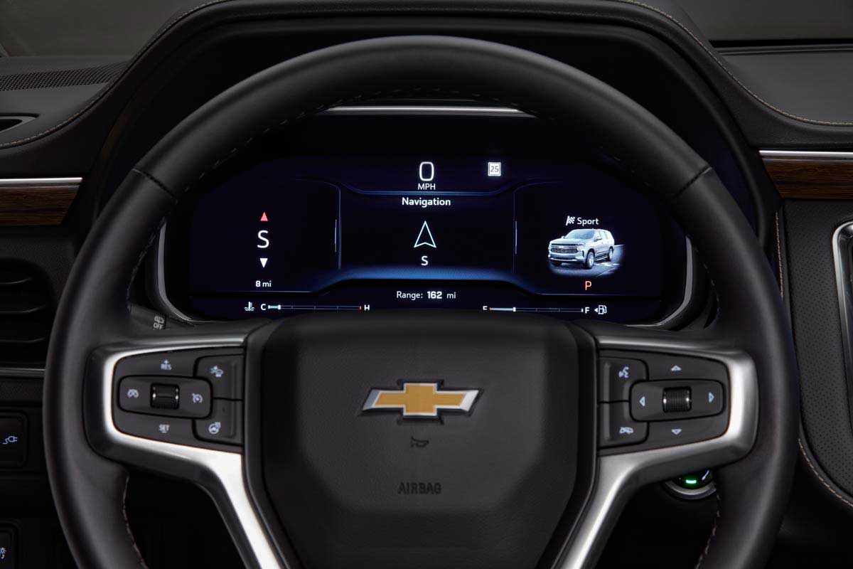 The 2022 Chevrolet Tahoe revolutionizes the cabin with the introduction of the virtual cockpit, using technology to amplify the driver’s experience. Headlined by a 12.3-inch high-definition display nestled behind the steering wheel, drivers can view and access vehicle information and functions in a whole new way. With a fully customizable display, drivers can set their preferred look and identify what information is shown.
