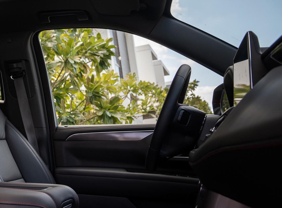 2022 Tahoe RST comes standard with the powerful and hugely popular 6.2L V8 engine with dual exhaust. Equipped with Magnetic Ride Control, one of the fastest-reacting damping systems in the industry, it is coupled with standard Four-Corner Air Ride Adaptive Suspension, adjusting between four ride heights to emphasize control, comfort and efficiency.