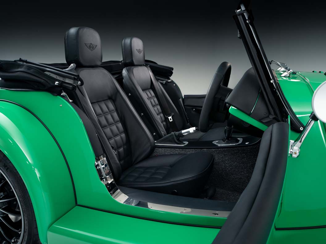 Inside the car, an all-new seat improves comfort, as well as driver confidence during dynamic driving. This has been achieved through reprofiled ergonomic seat padding in the base and backrest, as well as enhanced lateral and longitudinal support. It comes in two forms: the Comfort seat, which comes as standard on the Morgan Plus Four, and features adjustable lumbar support, and the Comfort Plus, which is fitted as standard to the Morgan Plus Six – and is available optionally on the Plus Four – and features increased elasticity in the seat base along with additional pneumatic adjustment to the side and thigh bolsters.