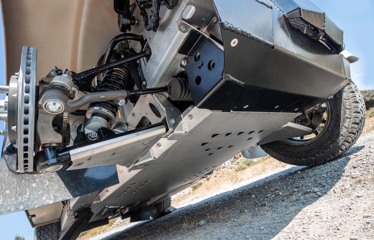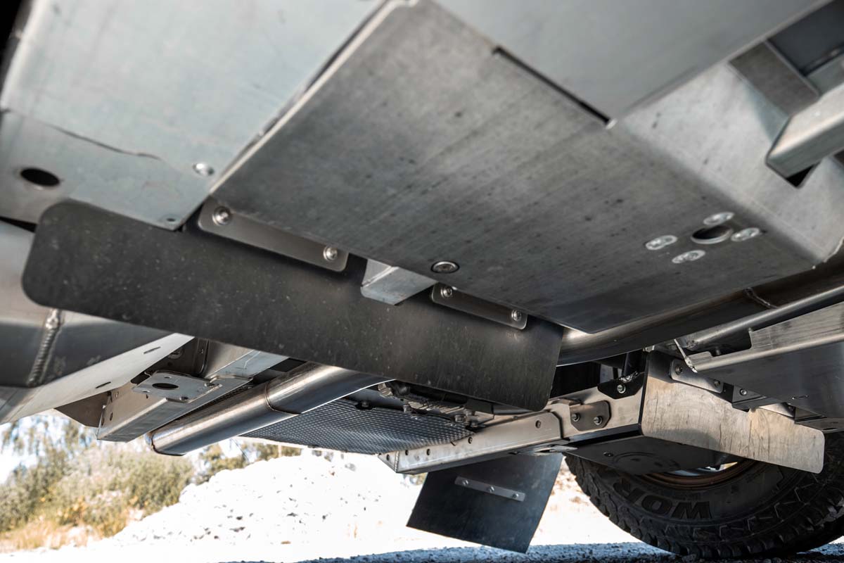 A five-piece underbody protection system – comprising an engine guard, rear chassis guard, mid-section shield and rear undertray – helps to protect the chassis and important components from damage when driving in extreme conditions. The car is also fitted with a full bespoke exhaust system with rear side-exit that improves the departure angle and contributes to 230mm of ground clearance.