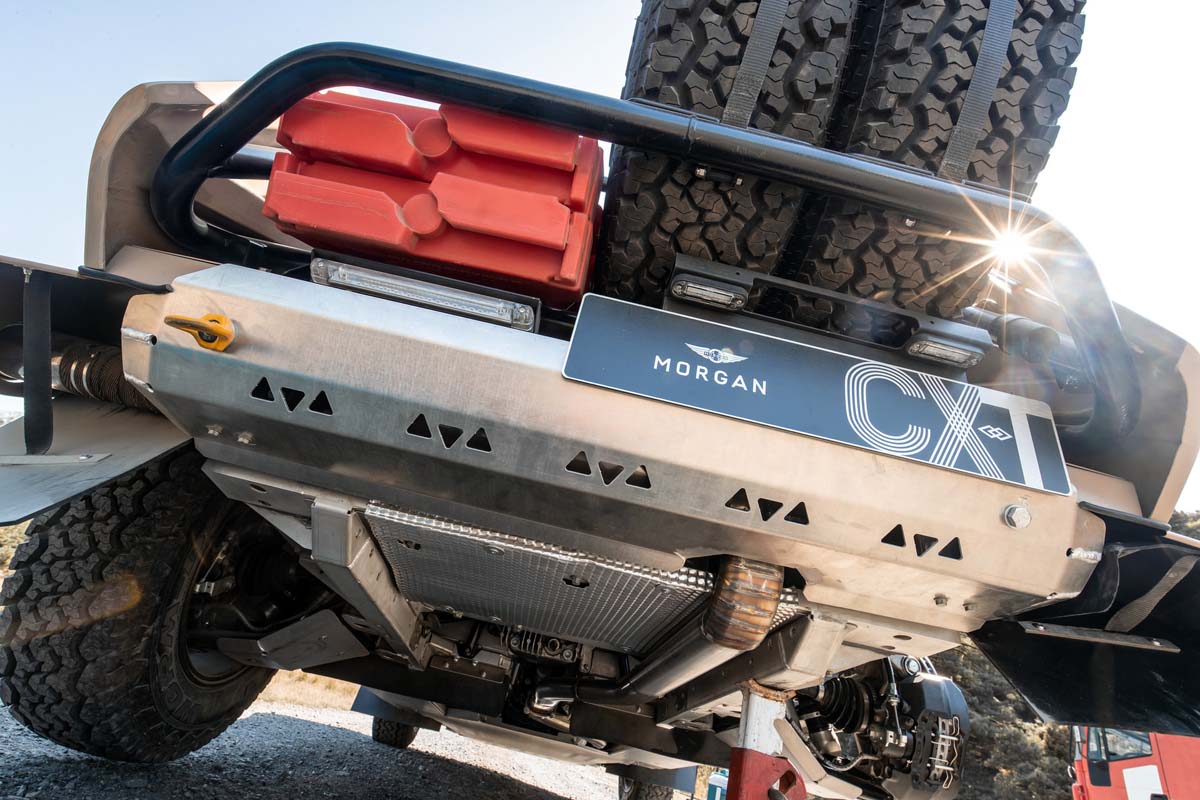 The exterior of the Plus Four CX-T is designed to maximise luggage and equipment carrying capacity, and provide the occupant protection necessary for extreme environments. Simultaneously, Morgan has ensured that its visual design reflects this capability and purposefulness.