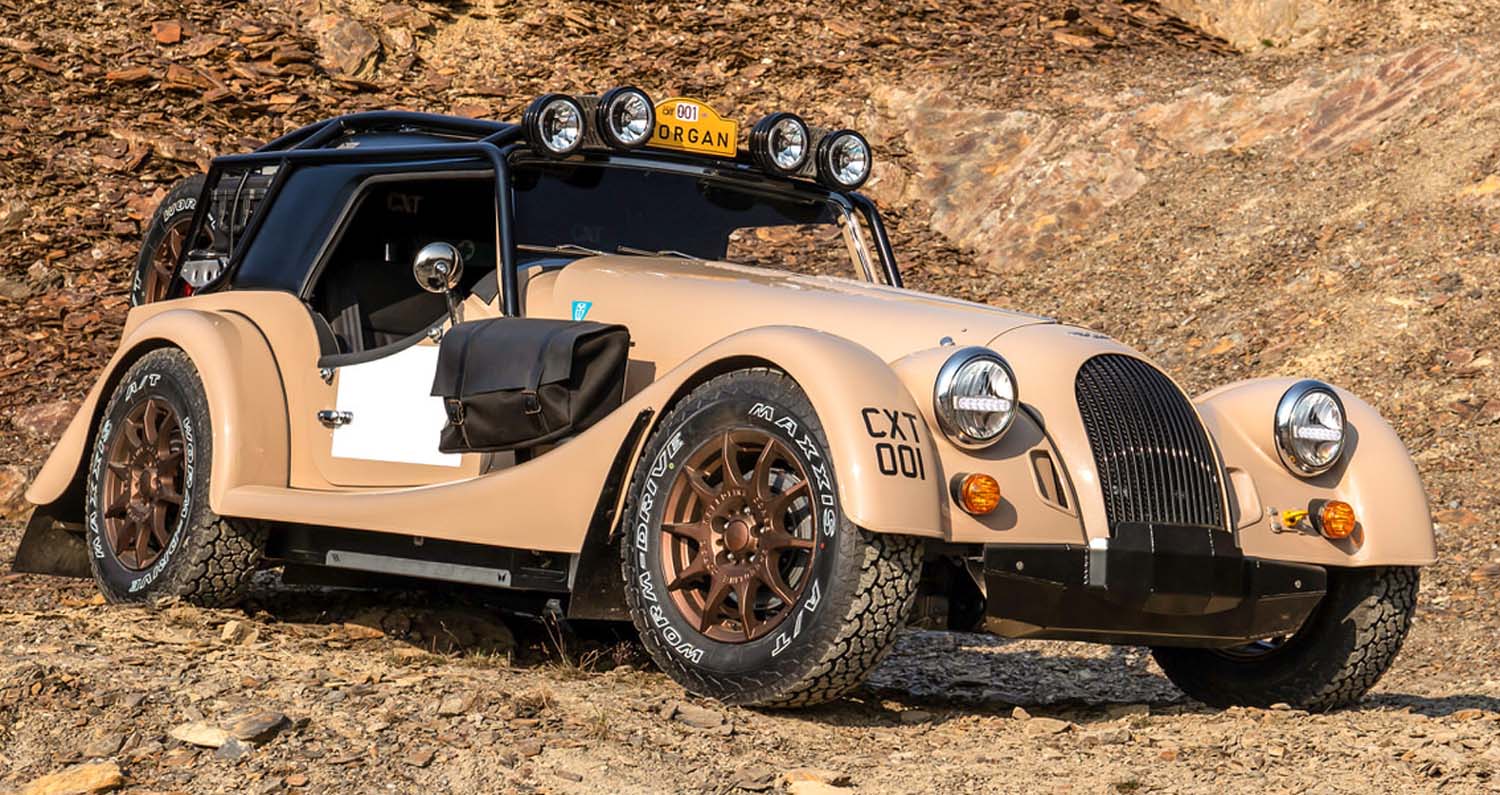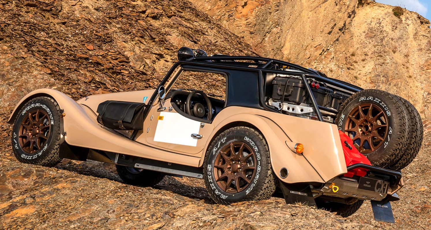 Most prominently, the rear panel of the vehicle has been replaced with an equipment rack, with unique side body panels designed to be reminiscent of the classic four-seater Morgan.