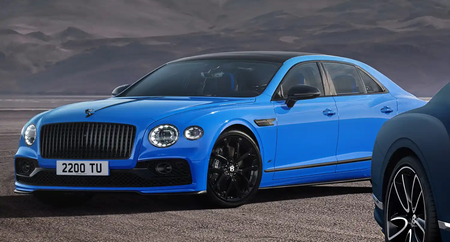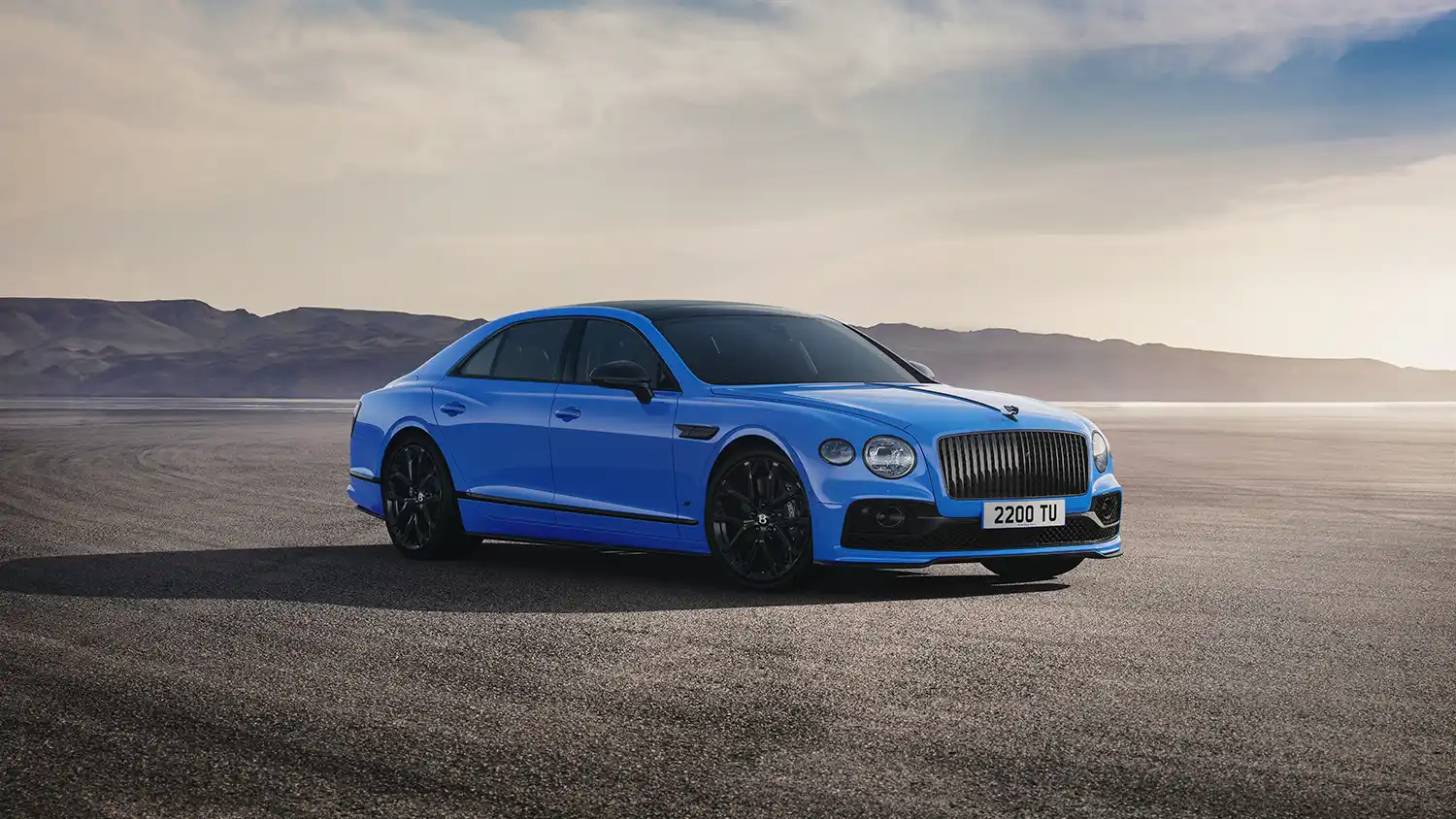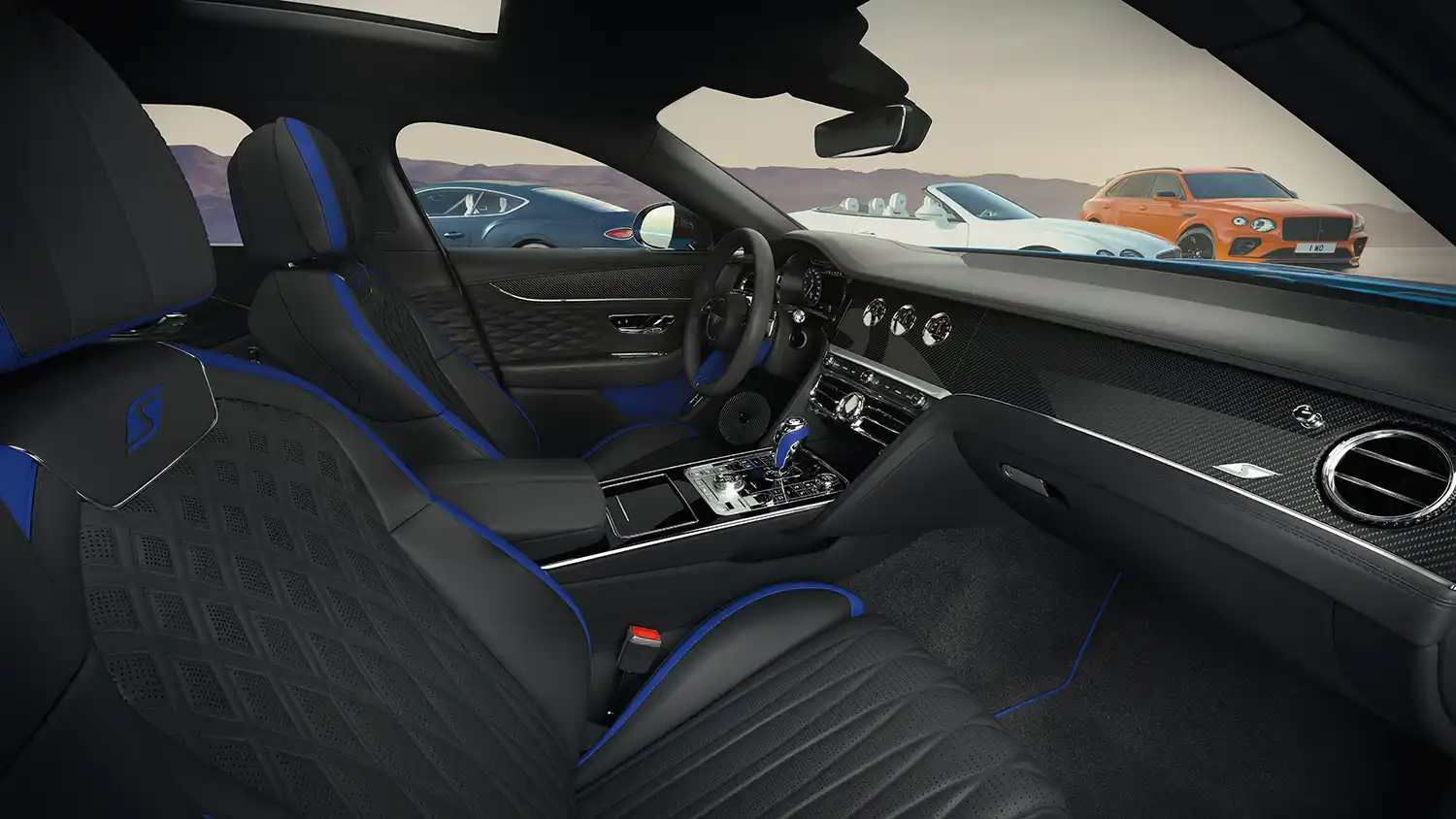 The 500th Mulliner commission is destined for a UK customer. One of the first Flying Spur S Hybrid to be personalised showcasing Spark, a new Blue exterior colour. Complemented by Blackline specification exterior brightwork and 22” ten-spoke Sports wheels in black. The illuminated Flying B that surmounts the black radiator grille in gloss black completes the dramatic effect.