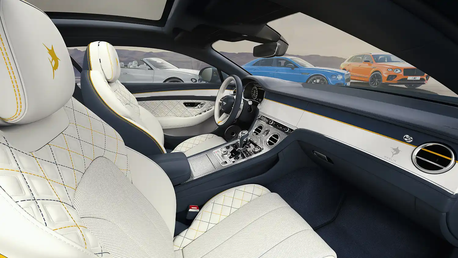 Further 2022 highlights include a Continental GT commissioned by Bentley Tampa Bay. Its shimmering Marlin blue satin paint finish and polished steel brightwork are complemented by the Styling Specification’s front bumper splitter, side skirts, rear diffuser and boot lid spoiler. These are finished in a unique tri-colour coachline with the top face in Marlin Blue satin, a mid-layer pinstripe in Monaco Yellow satin and a bottom face in Arctica White satin, a colour scheme that vividly evokes the distinctive colours of the blue marlin, one of the fastest fish on the planet.