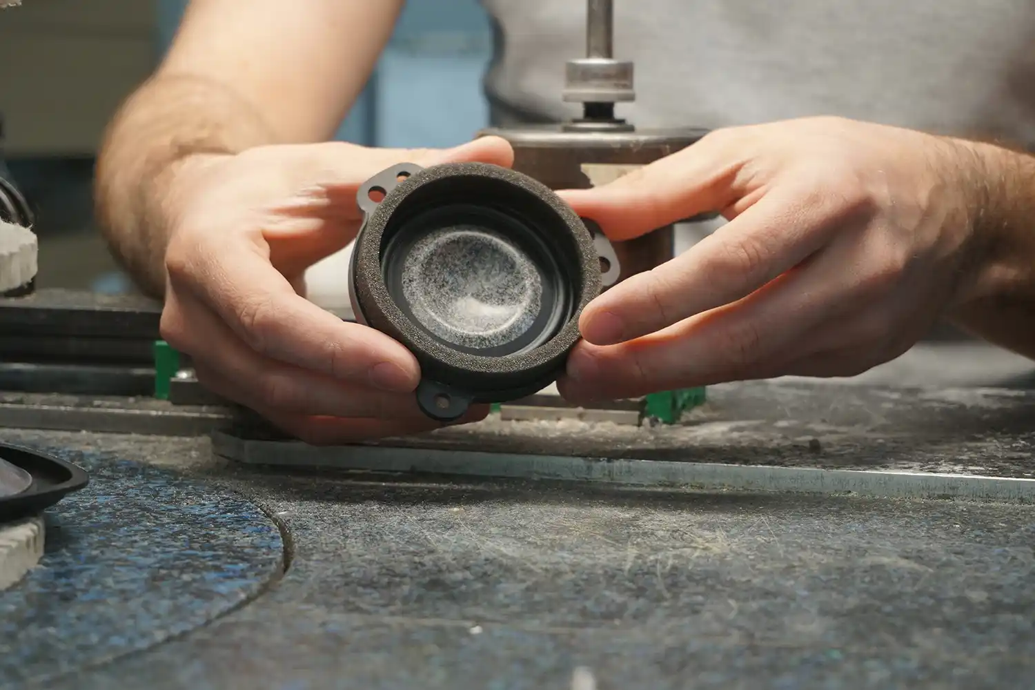 Focal has concentrated on the frequency at which the cone becomes deformed, leading to distortion, and drastically reducing resonance from the tweeter. Through finite element analysis, simulation software has made it possible to visualise the dynamic behaviour of the suspension material that connects the cone and the basket, revealing the areas for performance improvements. Therefore, by tuning the weight and shape of the suspension material, the best possible speaker driver can then be manufactured.
