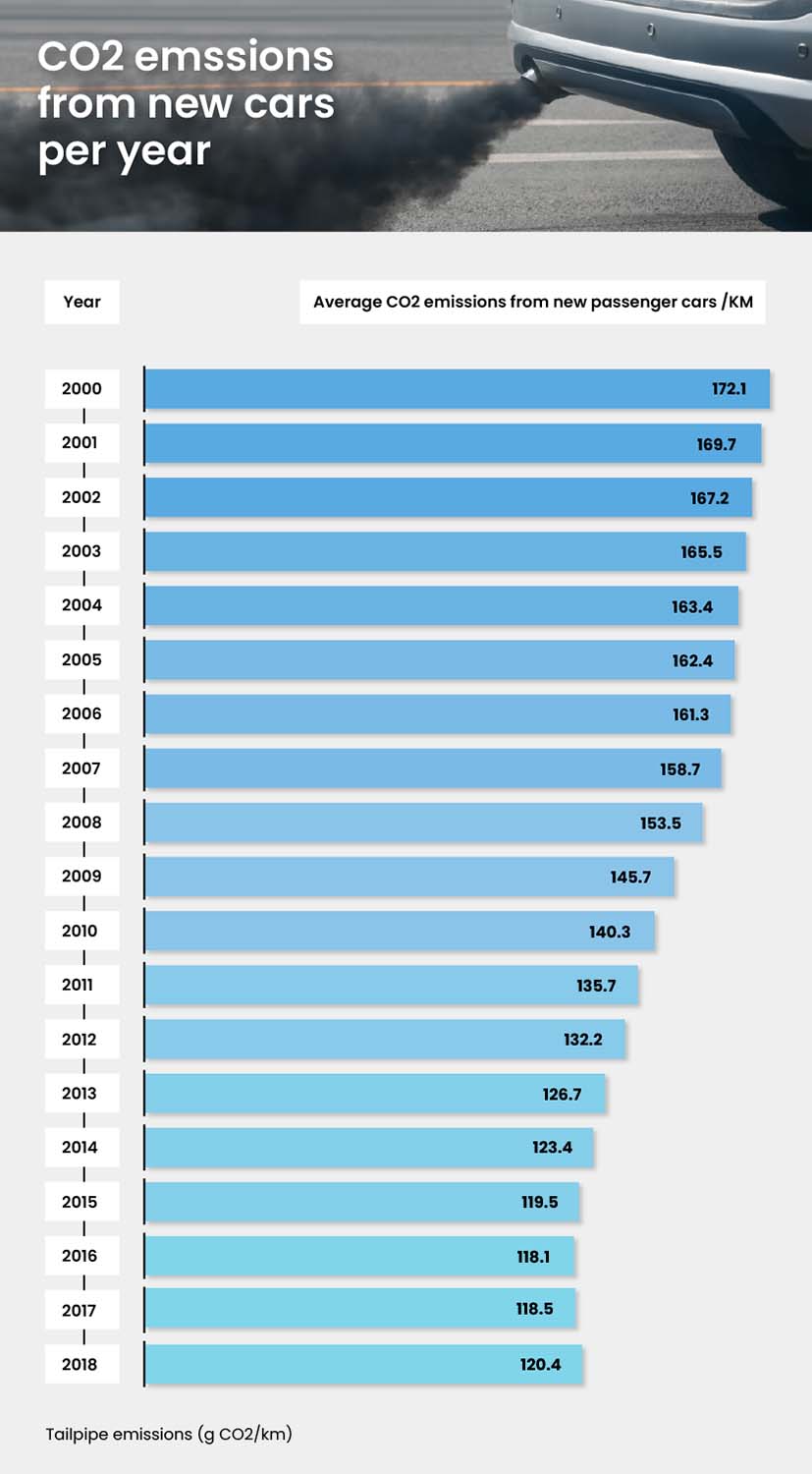 Analysing data from European Environment Agency (EEA), the Confused.com experts saw a 25% decrease in CO2 emissions between 2008 and 2018. Whilst this drop could indicate another 25% decrease over the next twelve years, current car sales can mean otherwise.