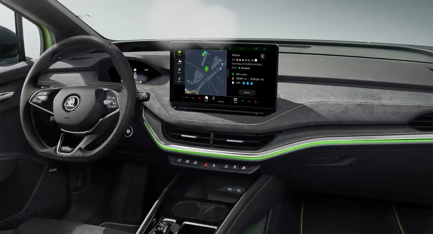 The new infotainment app ‘Powerpass Map’ enhances the Škoda iV ecosystem. Available for Enyaq iV family vehicles, the infotainment app shows public charging points along with detailed information about them on the central infotainment display. Users can also rate charging points and post comments, which are displayed as recent ratings and feedback. The Powerpass Map can now be downloaded free of charge from the In-car Shop in any Enyaq iV or Enyaq Coupé iV running the ME3.0 or newer vehicle software.