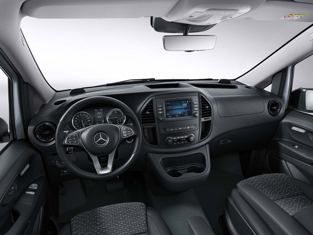 The new eVito panel van, similar to the eVito Tourer, already includes many attractive features as a production vehicle, such as 17-inch wheels, heated seats for the driver, the multifunction steering wheel with travel computer or DC charging with up to 50 kW. Numerous safety and assistance systems such as Active Brake Assist, ATTENTION ASSIST and Headlight Assist are also included as standard.