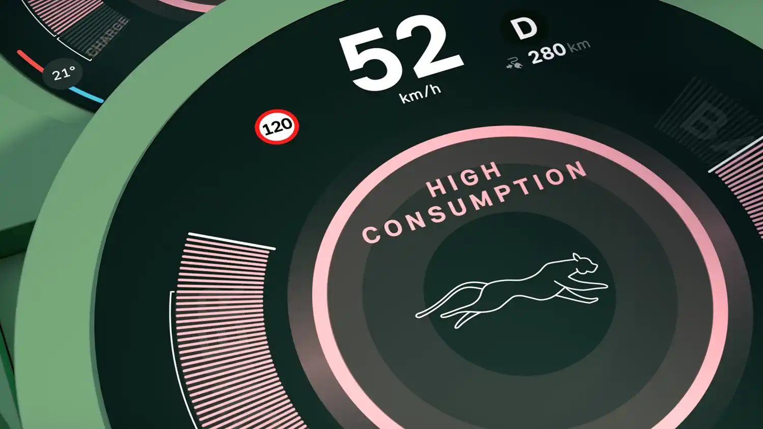 Depending on the Experience Mode selected, a single tap on the speed display transforms the entire MINI Interaction Unit into a MINI-typical speedometer.