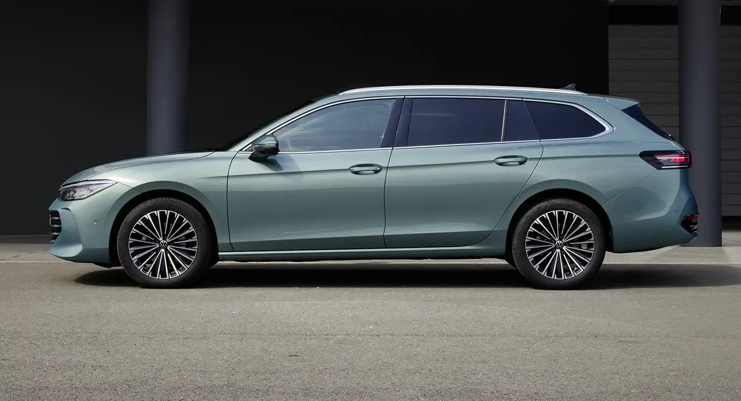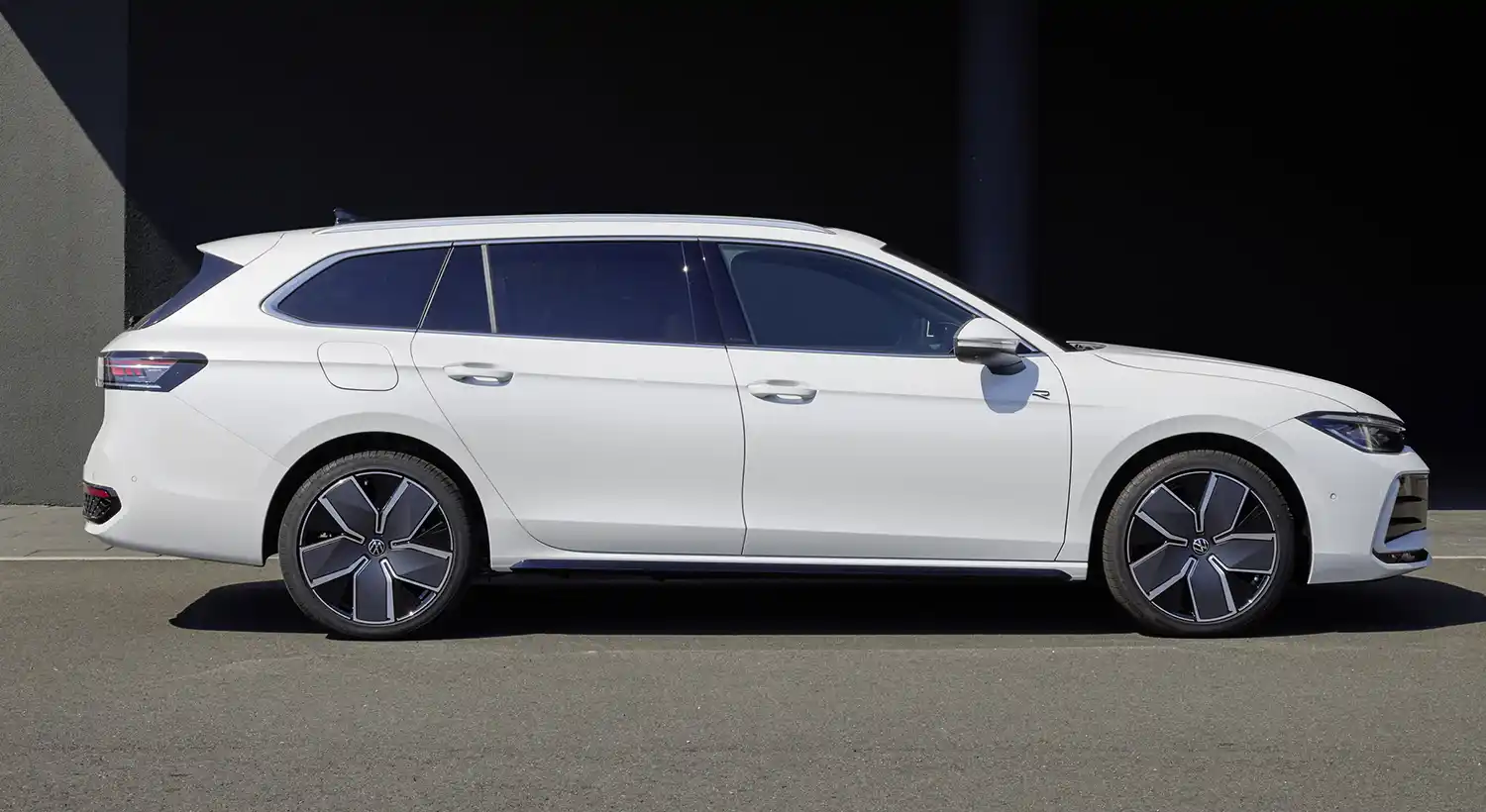The sleek architecture and proportions of the Passat have clearly changed: the surfaces are more sculptural, the lines more dynamic and the dimensions larger. The wheelbase is 50 mm longer than the previous Passat Estate (2,841 mm), the car is 144 mm longer (4,917 mm), and the width has increased by 20 mm to 1,852 mm. Meanwhile, the (with aerial) is almost unchanged at 1,506 mm.