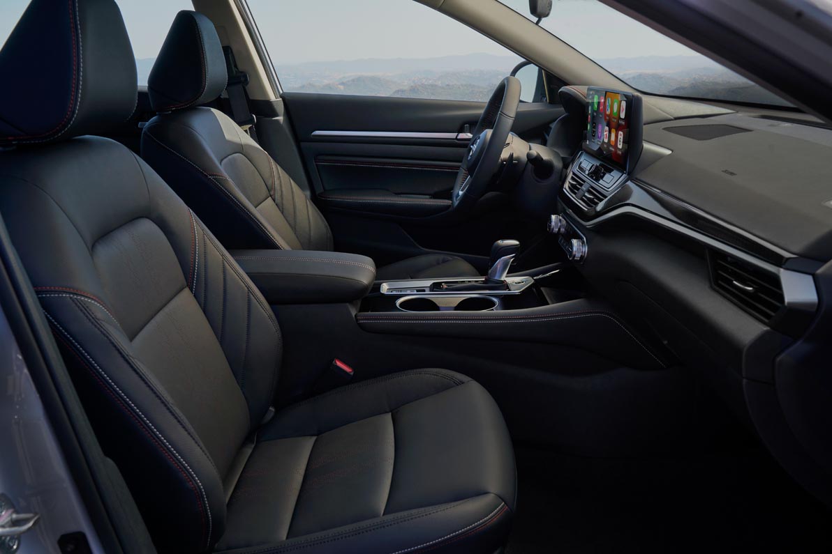 The 2023 Nissan Altima interior offers a near-luxury feel in both design and materials – including revised instrument panel finishings and a new dual-stitch interior fabric design for SR models. It also delivers a high level of convenience and connectivity features – including an available 7.0-inch Advanced Drive-AssistTM Display, NASA-inspired Zero Gravity seat design with dual-density foam and bolstering, available leather-appointed seating, and available 8-way power driver’s seat.