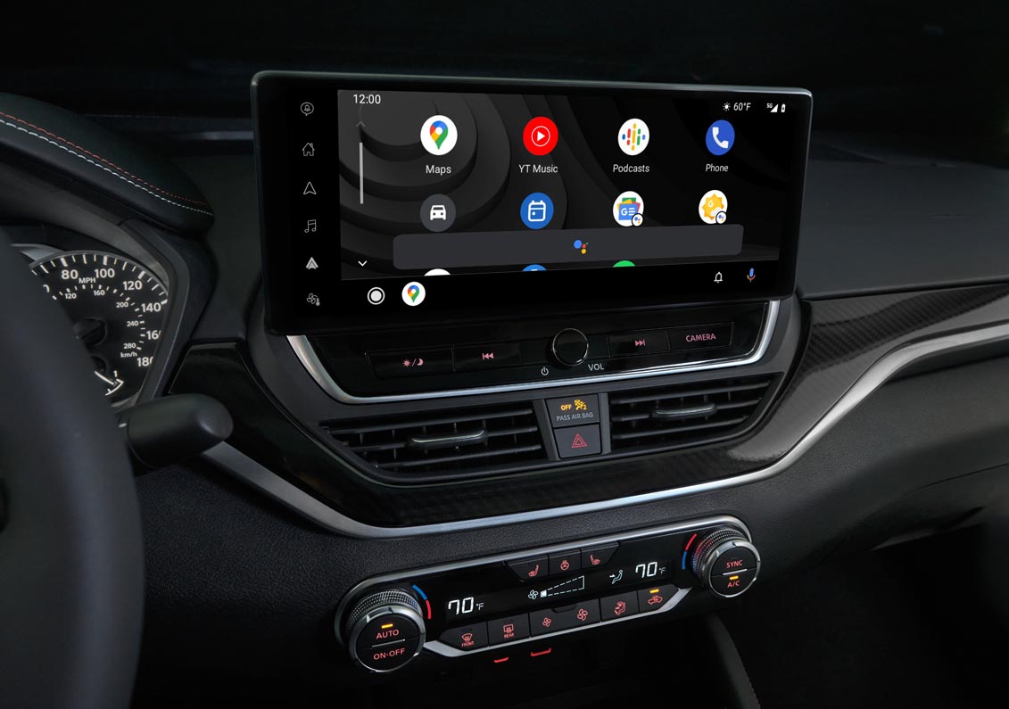 Among the enhancements for the 2023 model year are the additions of a new 12.3-inch HD color display with multi-touch control, Nissan Door-to-Door Navigation system, Android Auto™, wireless Apple CarPlay®, wireless phone charging pad and WiFi hotspot, all standard on Altima SL and SR VC-Turbo grades and available on SV.