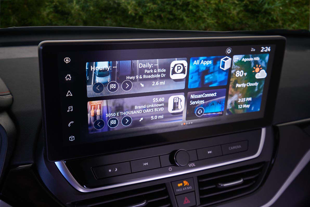 The new 12.3-inch display, the same size as found in the premium Nissan Armada full-size SUV, replaces the previous 8.0-inch display and features a high-resolution display that provides clear images and crisp graphics. The customizable home screen includes shortcuts to user favorites and one-line destination search.