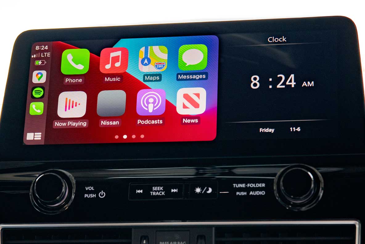 Standard smartphone connectivity includes wireless Apple CarPlay® and wired Android Auto™. The available wireless smartphone charging starts immediately when the phone is laid down, and a charging indicator shows charging status. Every 2021 Armada can also update map data and software through on-board Wi-Fi connectivity.