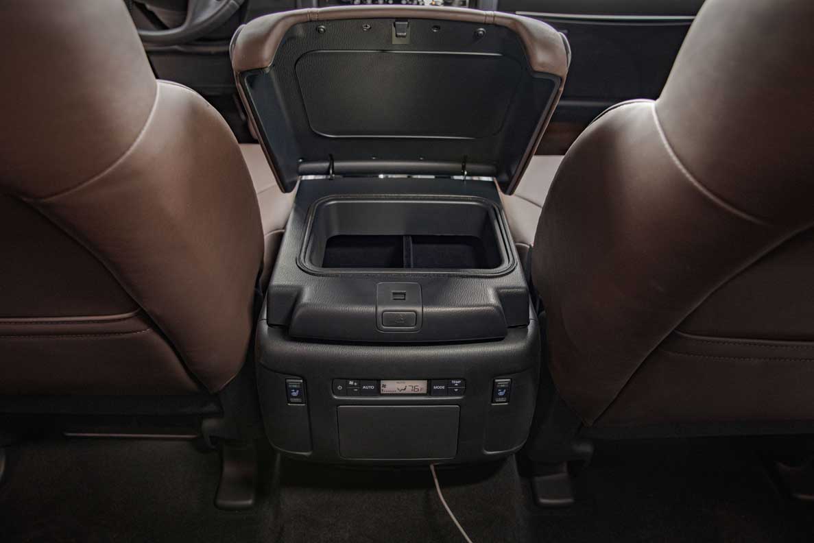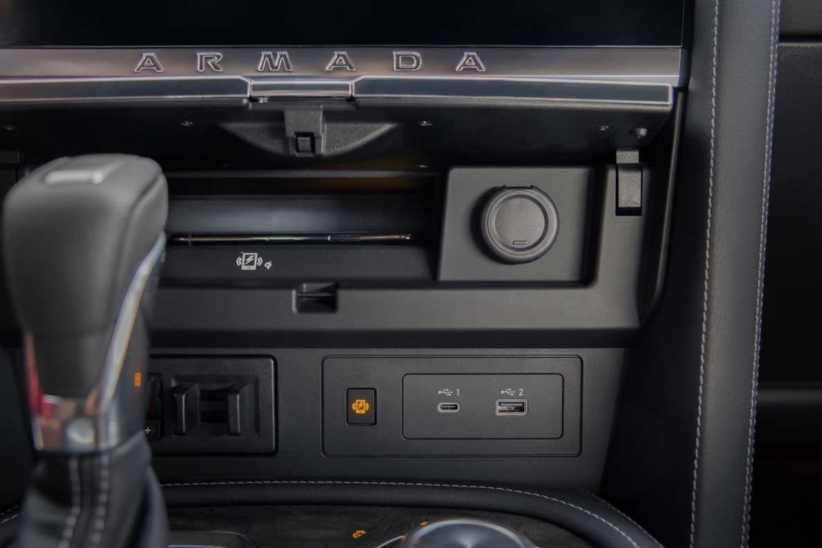 Utility is another area where Armada delivers, with a redesigned, highly functional front center console that can be opened/closed from the front and rear. A removable tray has been added to hold small items, while a deeper well is available for larger ones.