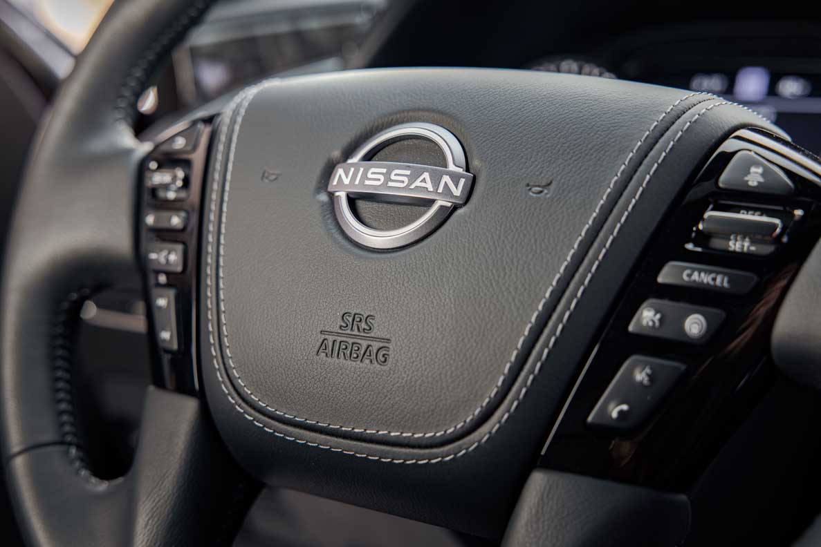 In addition to the standard features on the Armada SV, the Armada SL adds 20-inch wheels, leather-appointed seats and door trim, LED fog lights, memory power driver’s seat and steering wheel, power-sliding moonroof, Intelligent Around View® Monitor, Remote Engine Start System, power liftgate, 13-speaker Bose® Audio system and Trailer Sway Control.