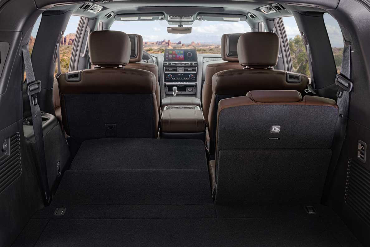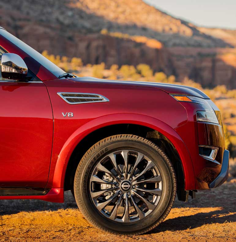 Armada’s rugged yet refined exterior matches its capability – with a more squared and chiseled appearance from the A-pillars forward. The new front fenders, grille and bumper are framed by a new LED headlight design with more than 50 LEDs in each headlamp, helping create a wide, bright headlight pattern. In the rear, new combination lights with 70 LEDs in each light help provide a highly visible, modern appearance.