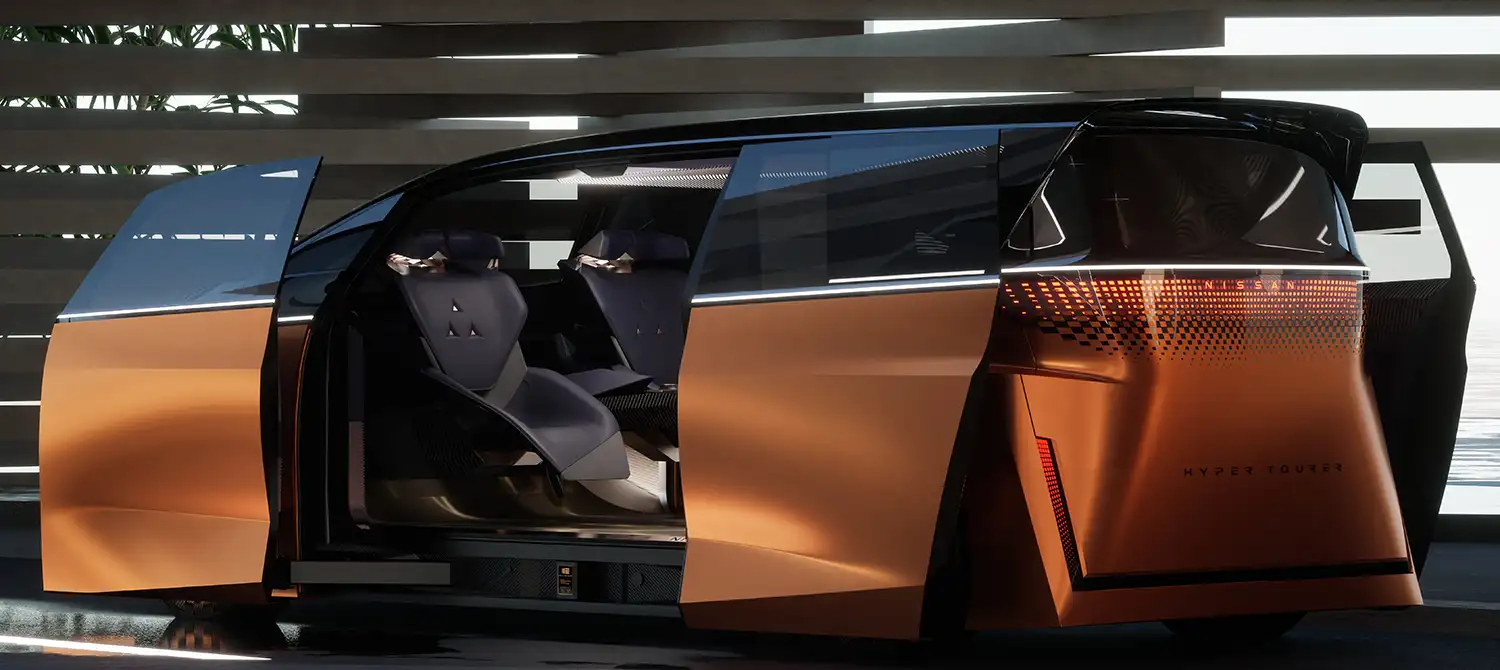 With the Nissan Hyper Tourer concept, Nissan re-envisions the group road trip by combining the comfort of a luxurious living room with the convenience of a passenger van – all contained in a stylish and futuristic package.