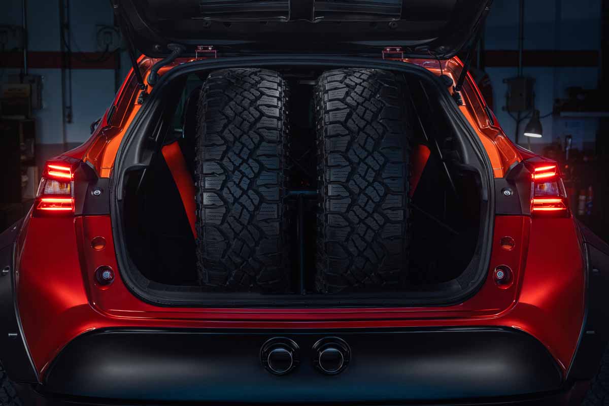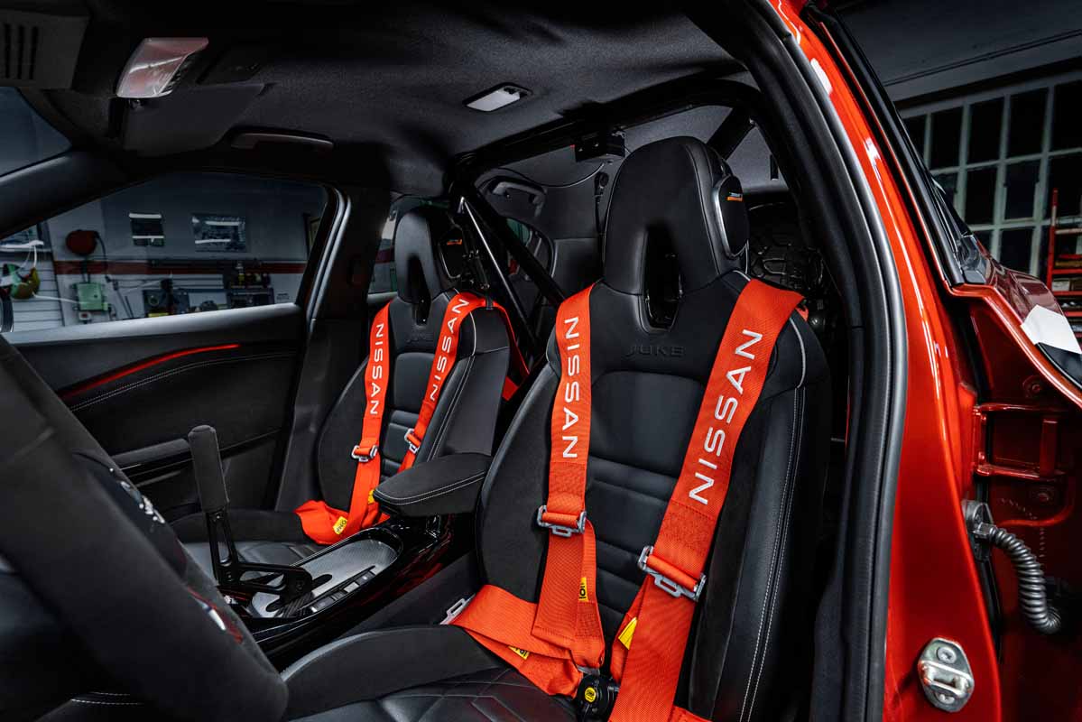 Similarly, the black hood and enlarged black wheels are a visual homage to the 1971 vehicle that competed in the East African Rally. The use of vintage sponsor logos and the number 11 also reflect aspects of the 240Z rally car, as do the additional of reinforced plates under the front and rear valances which offer protection to the vehicle’s underside. Reinforced and long-travel suspension has been fitted all-round, to give the Juke Hybrid Rally Tribute exceptional poise over the challenging terrain it will navigate. The tyres are 265/70 R16, giving phenomenal grip and traction in all conditions, in the most difficult conditions.