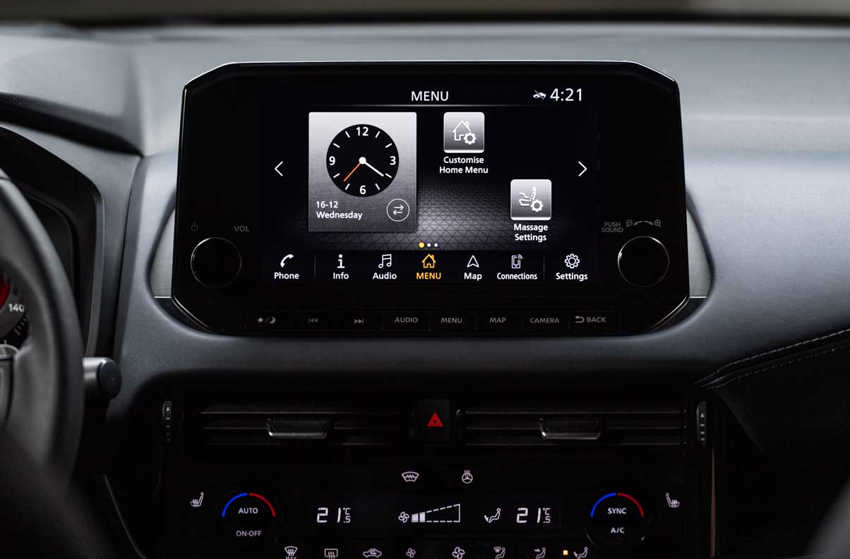 The larger, higher resolution 9 inch NissanConnect display screen is a digital gateway to navigation, entertainment and vehicle settings, and is compatible with both Android Auto® and Apple CarPlay®, with wireless Apple CarPlay® also introduced.
