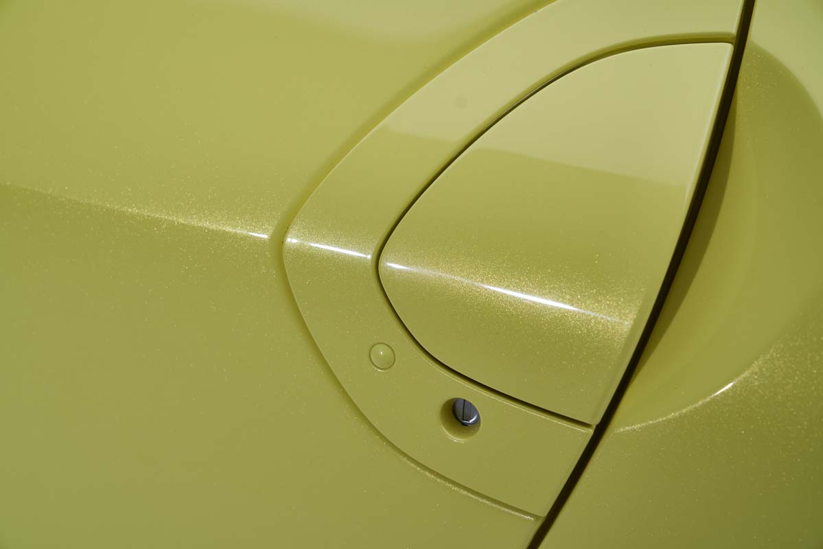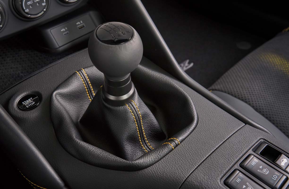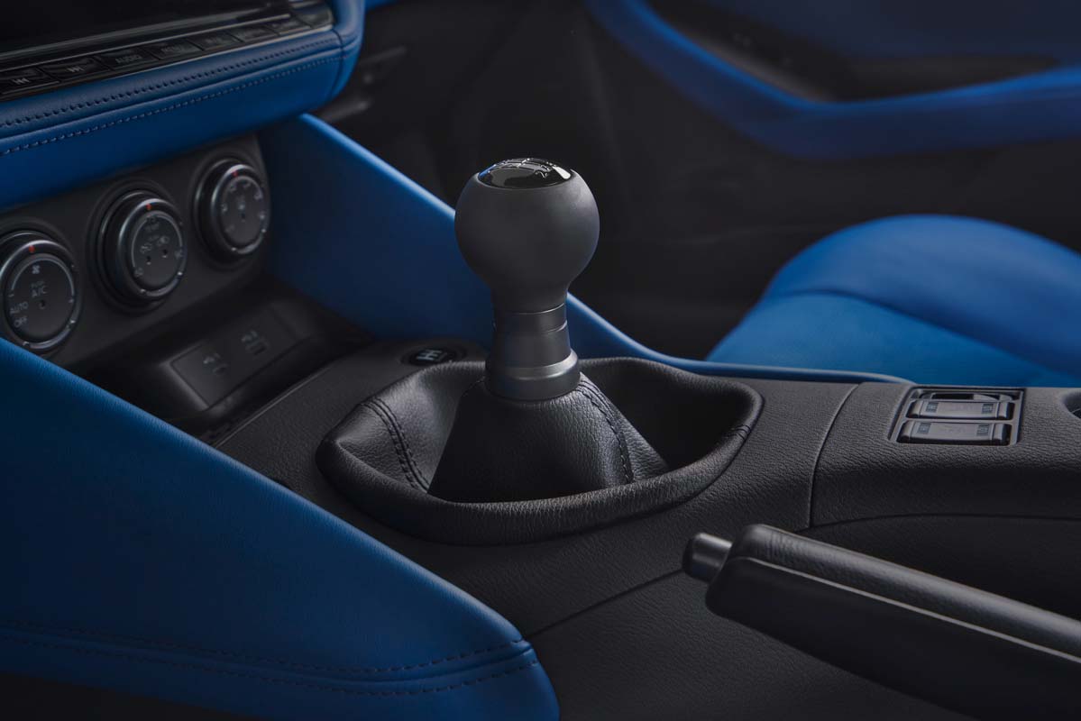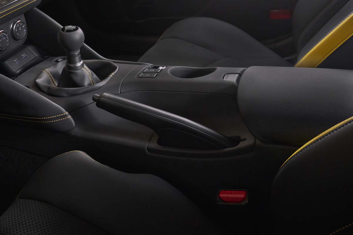 Three interior color environments are available – Graphite, Red and Blue. The limited edition Proto Spec features yellow accents throughout the cabin, including stitching on the instrument panel. The seats feature layered seat material to create depth and a gradation effect.