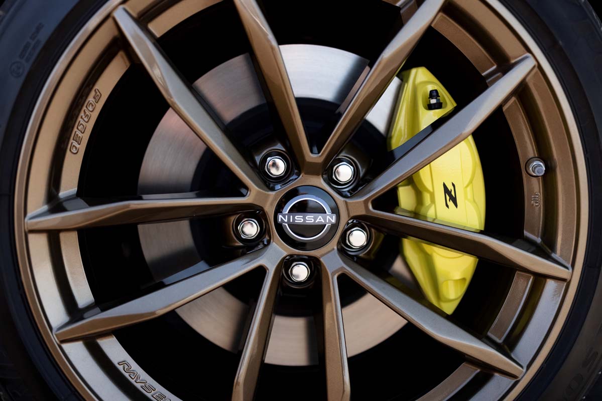 A limited edition Nissan Z Proto Spec is also offered featuring exclusive yellow-colored brake calipers with Z logo, bronze-colored aluminum-alloy wheels, exclusive leather-appointed seats with yellow accents and yellow interior stitching throughout. Production of the Nissan Z Proto Spec is limited to 240 units.