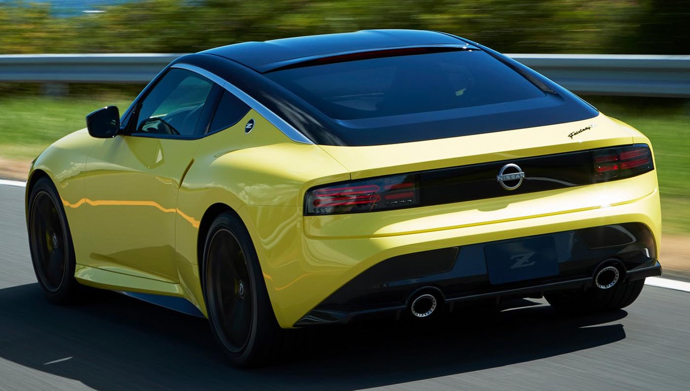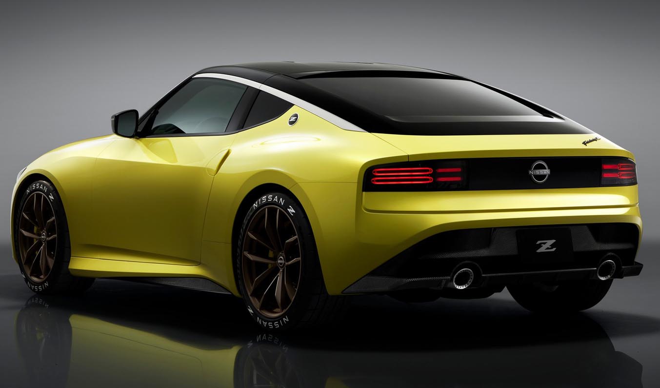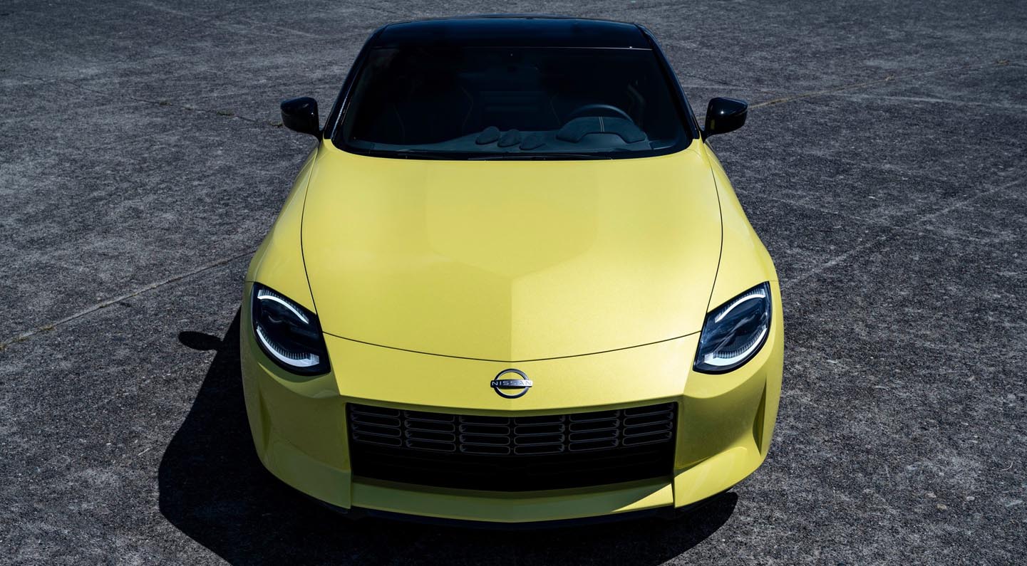 The shape of the hood and the canted, teardrop-shaped LED headlights are both unmistakable reminders of the original Z. The rectangular grille dimensions are similar to the current model, although the grille fins nod to the past. The form continues to exude both sportiness and elegance.