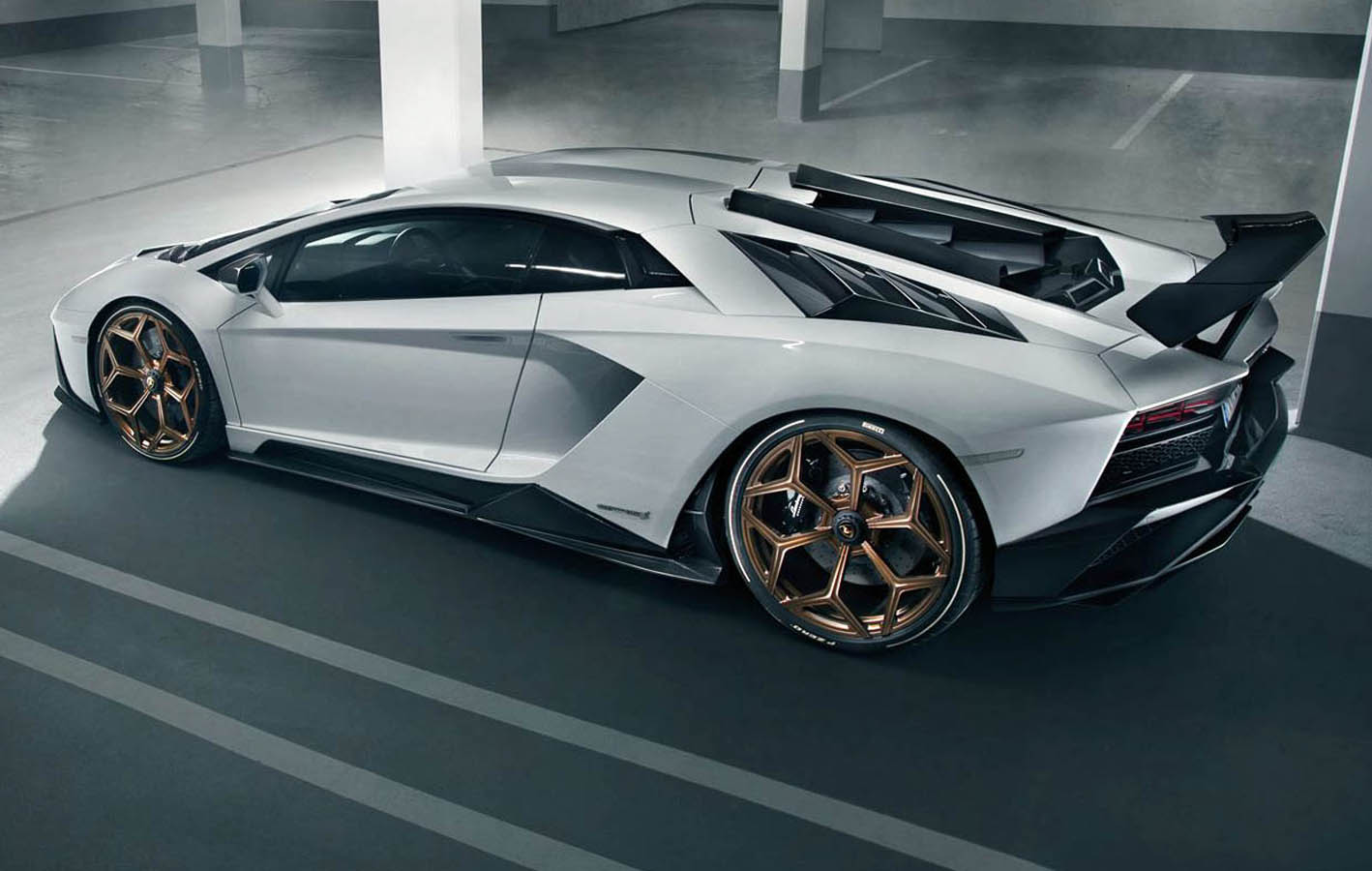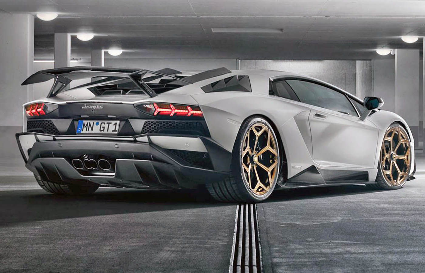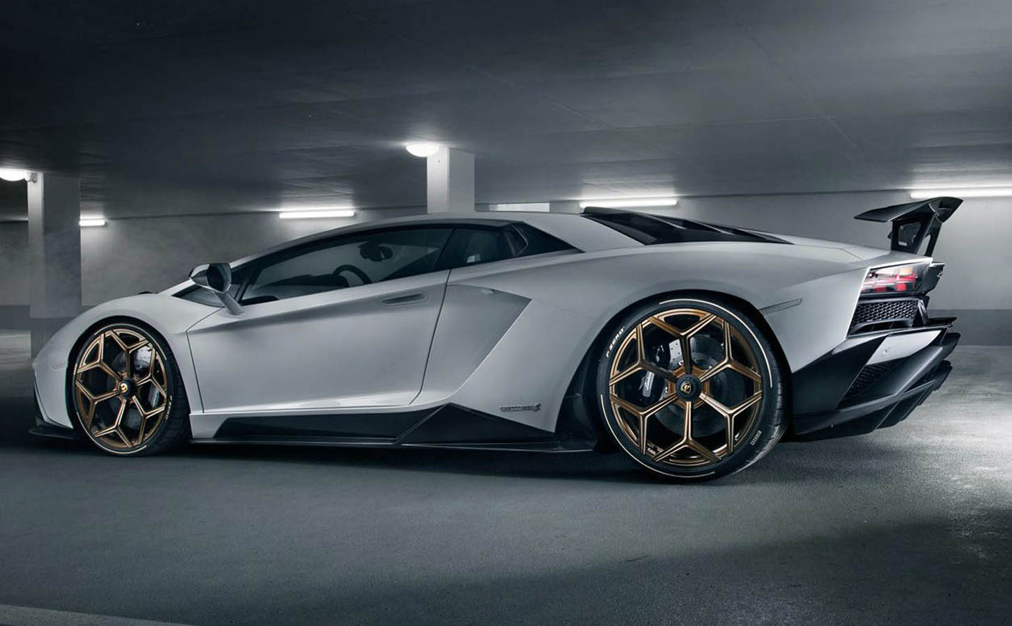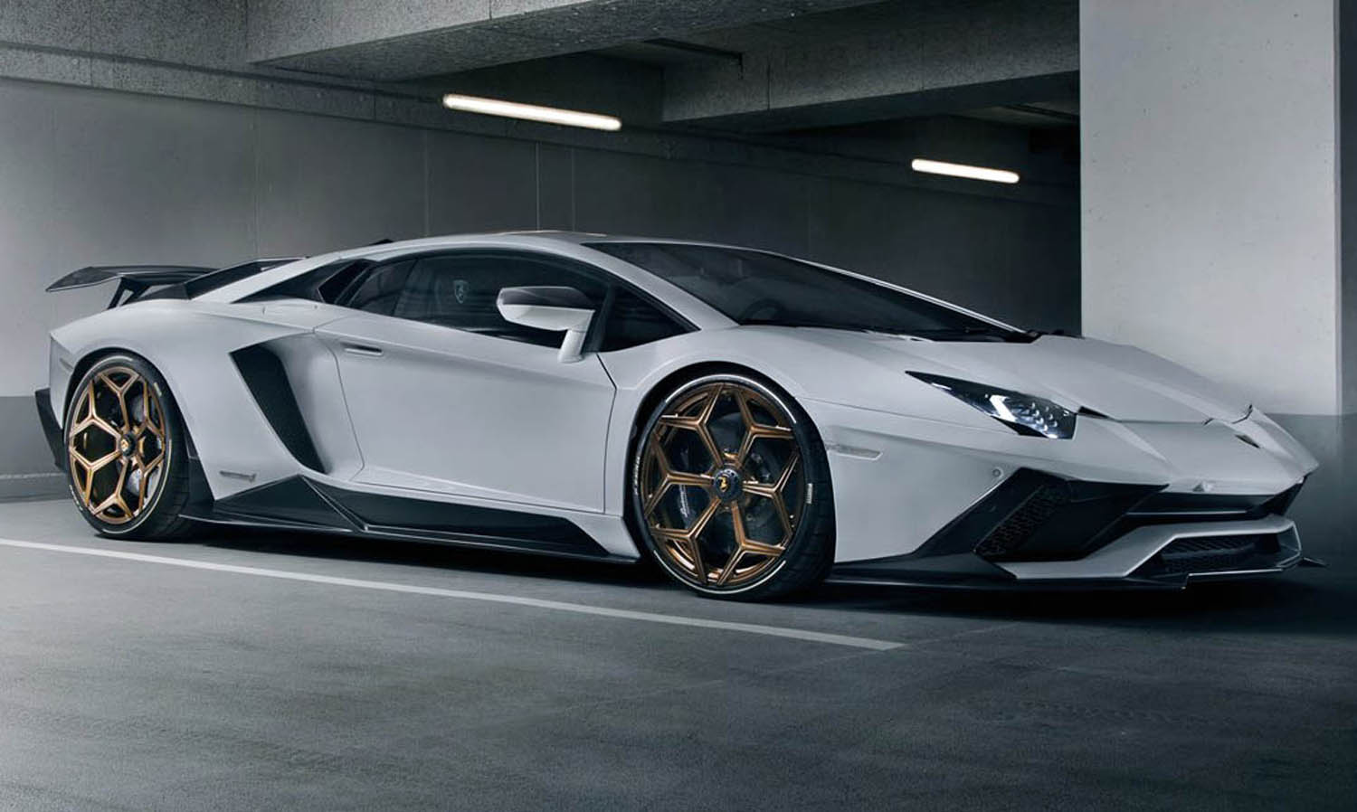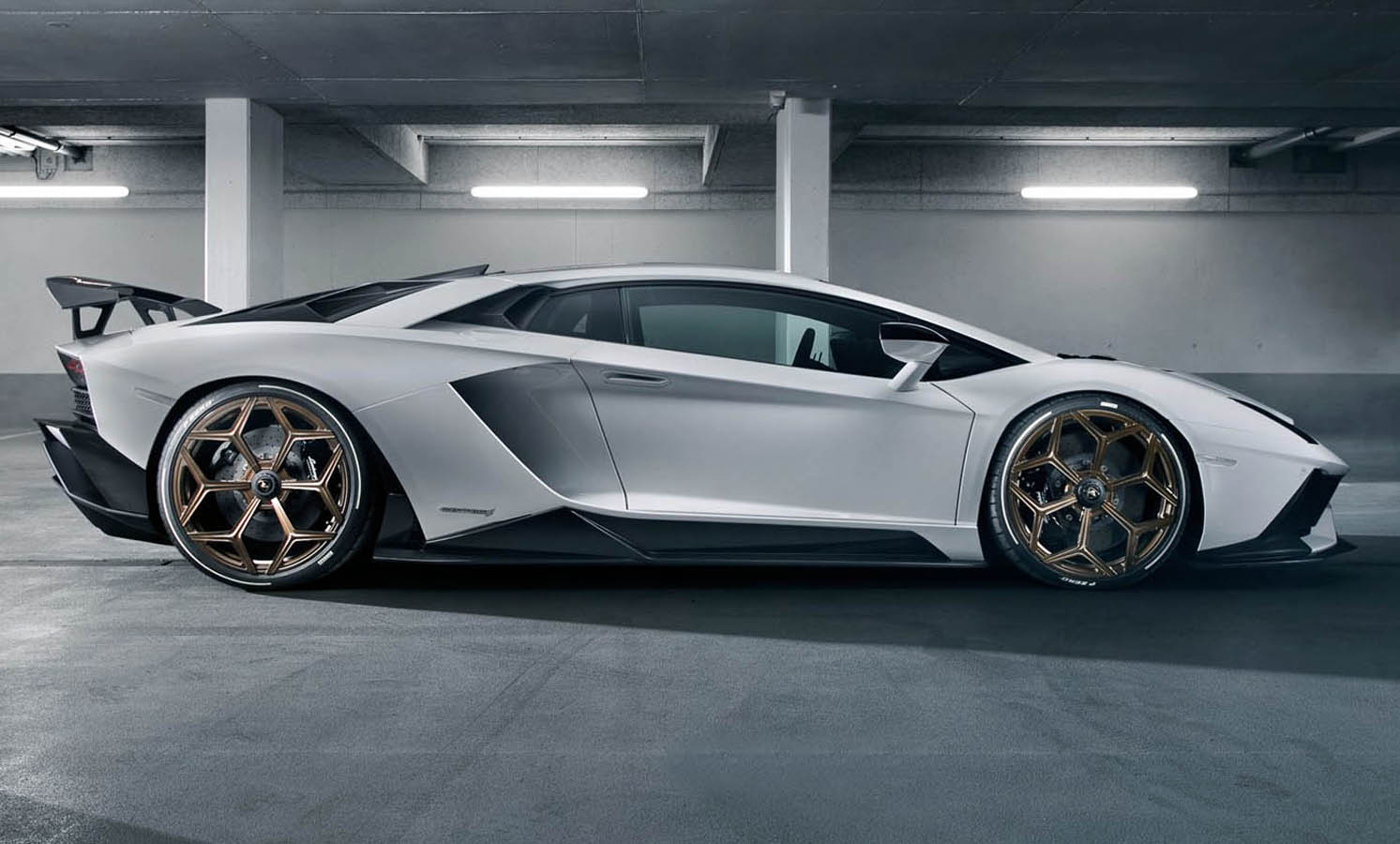 In addition, the components, which were fine-tuned in the wind tunnel, lend the Aventador S full-blooded racing looks, particularly the naked-carbon version. The German refinement specialist offers hi-tech in its purest form for the top-ofthe-range Lamborghini model also with tailor-made NOVITEC forged rims, which come with or without center locks.