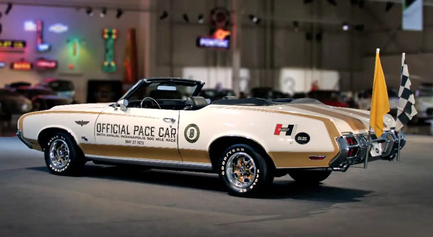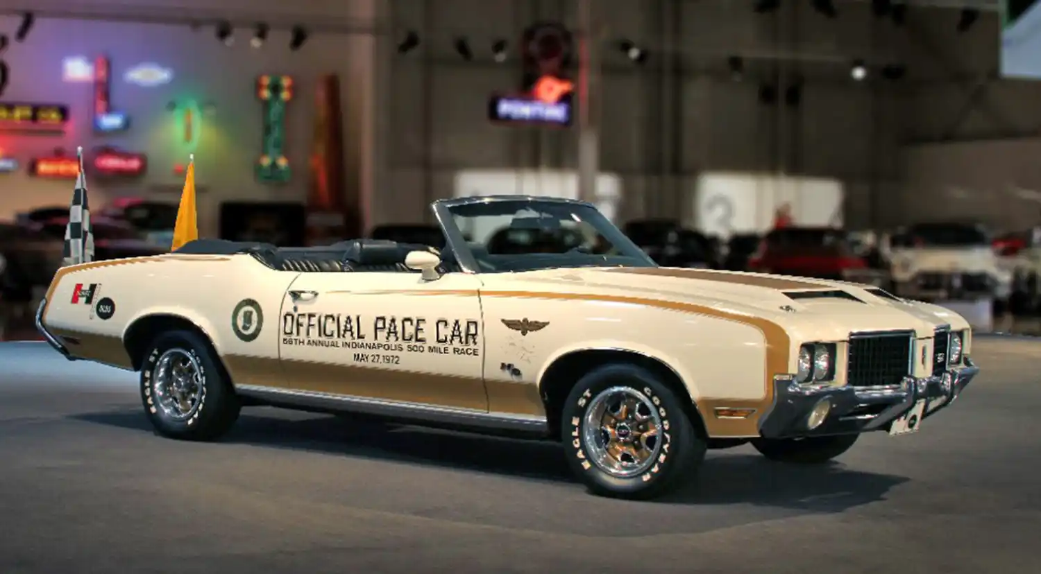 An Oldsmobile car first paced the famed “Brickyard” with the 1949 ‘Rocket V8’ powered convertible and has been chosen as the pace vehicle for the Indianapolis 500, 11 times through the 2001 race.