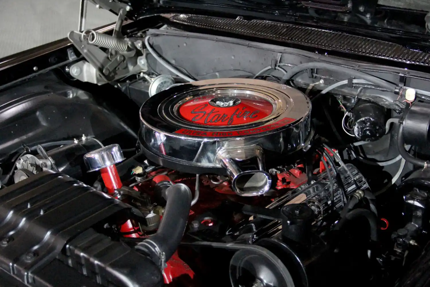 Up front, the car featured a bold grille with a quad-headlamp design that emphasized the Starfire’s wide stance. The rear design was equally striking, with prominent tailfins and jet-like taillights that gave the car a sense of motion even when parked. With an overall length of nearly 18 feet, the Starfire had a commanding road presence that reflected its status as a luxury cruiser.
