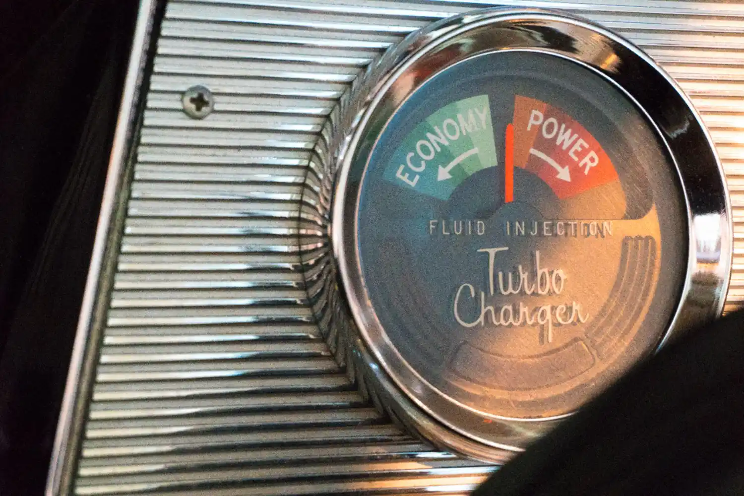Turbo-Rocket Power: The Jetfire’s Heart: At the heart of the Jetfire lay its revolutionary 215 cubic inch “Turbo-Rocket” V8 engine. This lightweight, aluminum-block engine was force-fed by a Garrett AiResearch turbocharger, a relatively new technology for production cars. This groundbreaking setup resulted in an impressive output of one horsepower per cubic inch of displacement, a feat considered remarkable for its time. The Jetfire’s turbocharged engine delivered a surge of power that set it apart from its naturally aspirated competitors.
