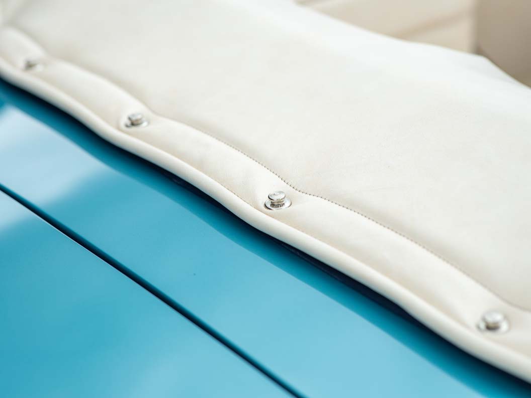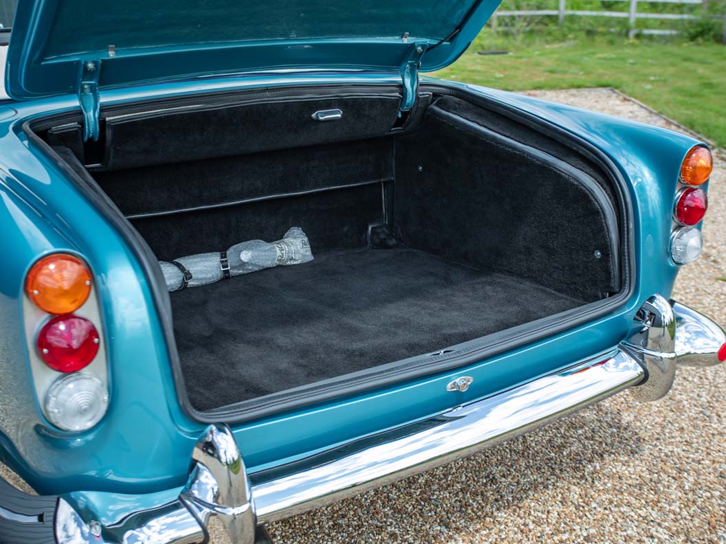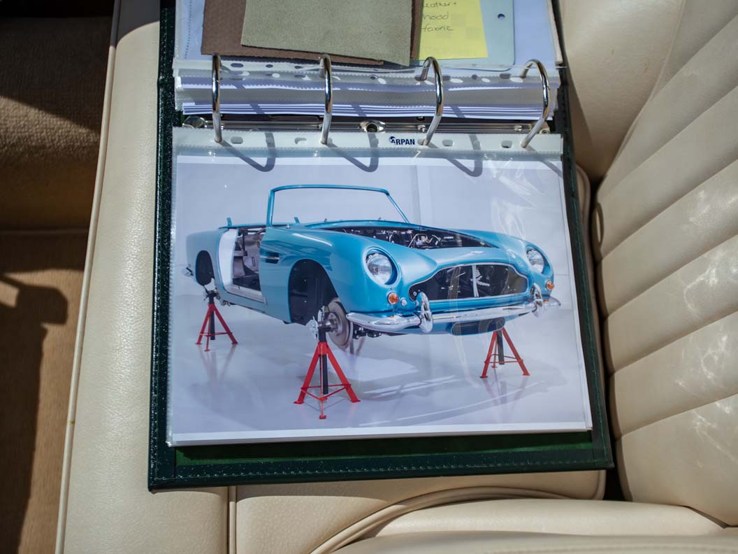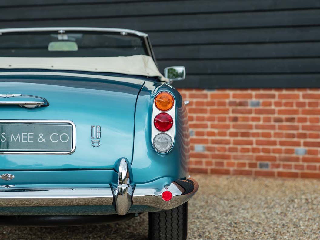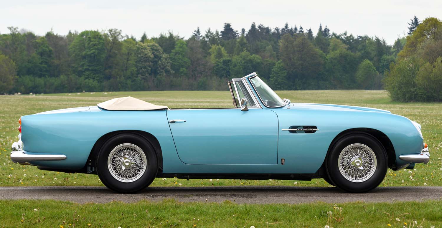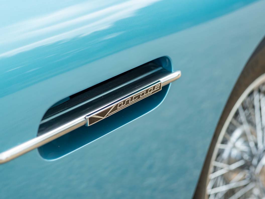 Alongside the Shooting Brake sits a DB5 Vantage Convertible, an icon of the swinging sixties which has found favour with Ralph Lauren, Peter Sellers and Elle Macpherson. In total, only 123 were built and only five such examples were completed to Vantage specification, including the car offered here. Finished in the period colour combination of Caribbean Pearl Blue with White Gold hide interior and matching hood, it’s a perfect reflection of the best of the Swinging Sixties.