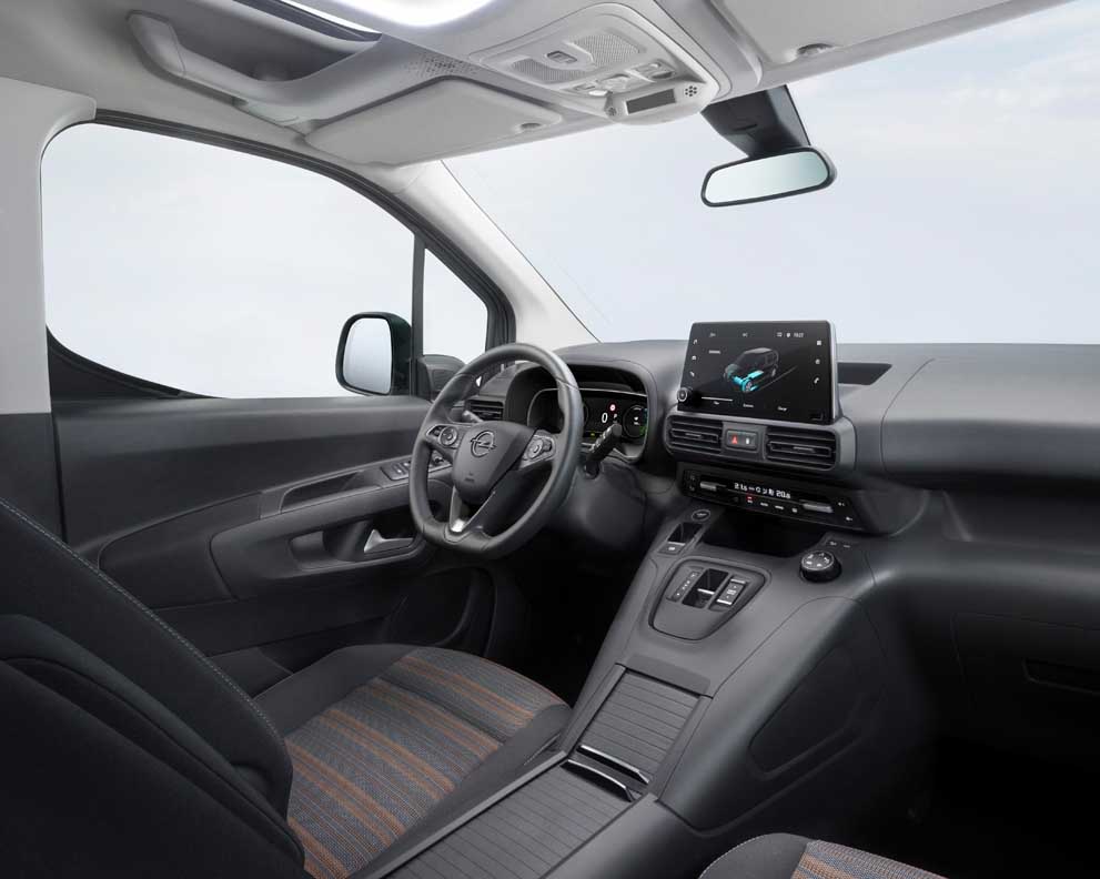 When ordered with the panoramic roof, the Combo-e Life comes with overhead storage running down the centre of the vehicle with LED lighting as standard. In this configuration the newcomer is also fitted with a large 36‑litre storage box mounted above the hat tray in the boot.