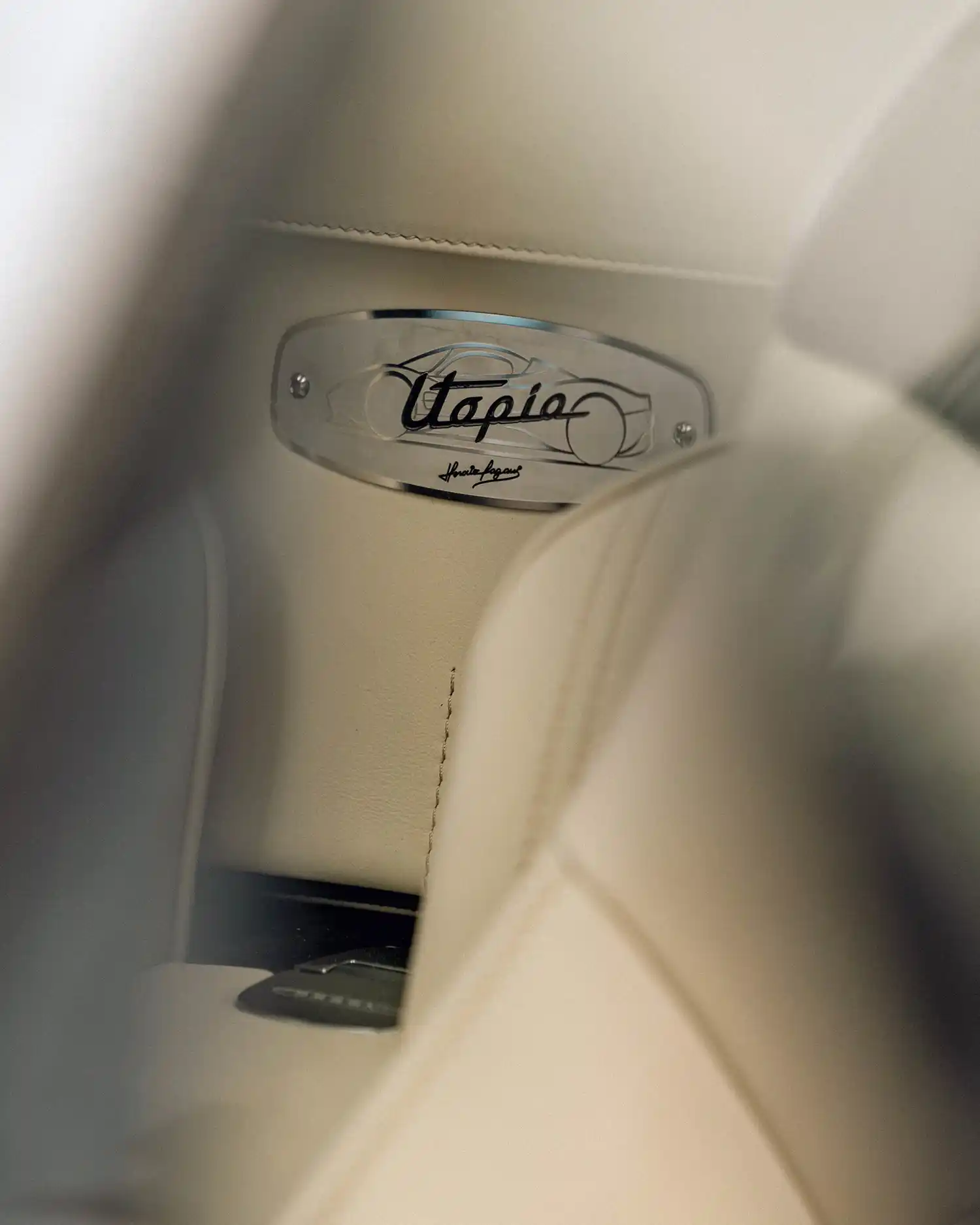 A car may be compared to a sculpture, but opening the door changes everything; a sculpture, yes, but one you can sit in. The interior of Pagani Utopia is even more original, if that is possible, than its exterior shape.