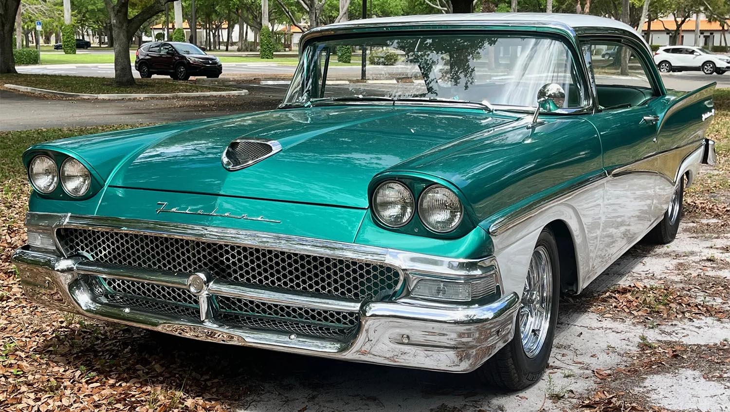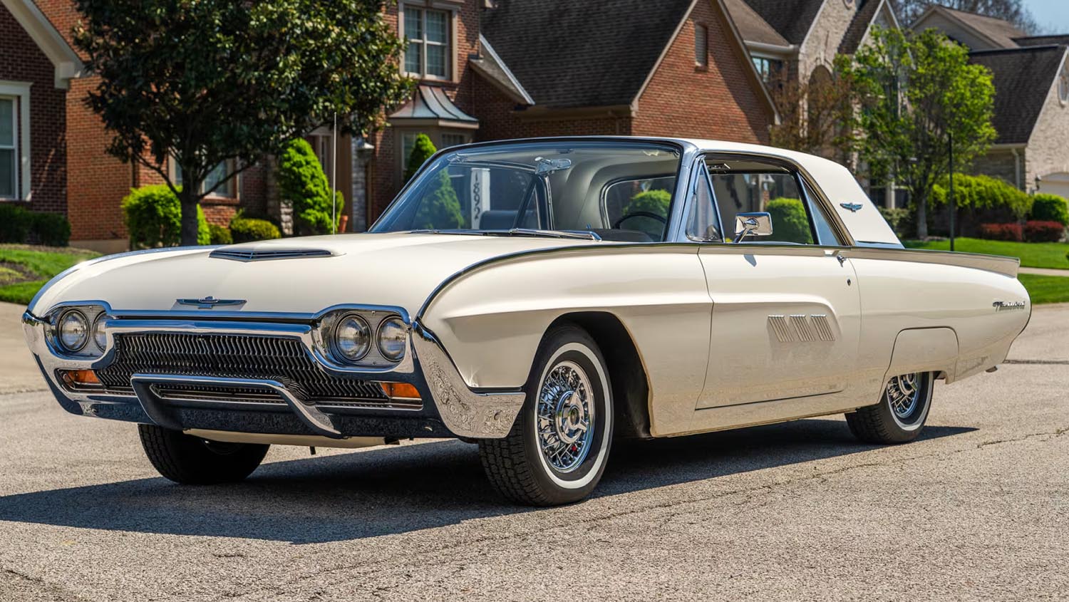 The 1957 Ford Thunderbird F-Code is a rare automotive masterpiece, featuring a factory-supercharged 312 V-8 and a comprehensive $150,000 restoration in Gunmetal Gray over Red.