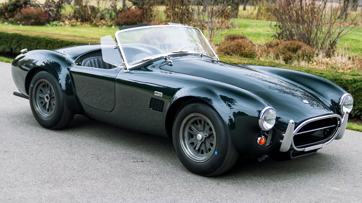 1966 Shelby 427 Cobra Narrow Hip Roadster restored with original 427ci V8, crossing Kissimmee auction in 2026. This rare example is the last Narrow Hip by serial number, combining factory Green paint, Black leather interior, and dual four-barrel carburetors.