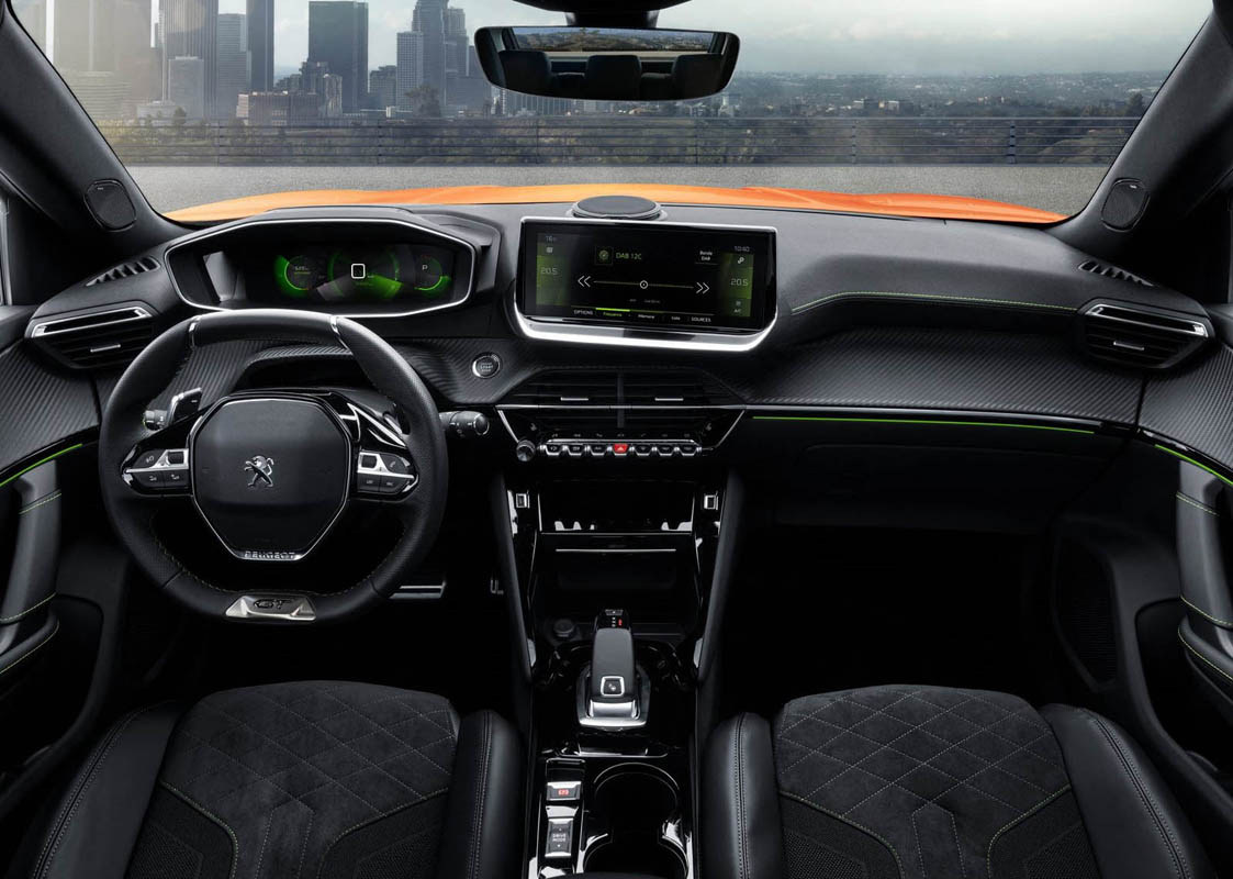 The central touch-screen is perfectly positioned and accompanied by seven ‘piano key’ toggle switches which operate the main i-Cockpit® features: radio, air conditioning, navigation, vehicle settings, telephone, phone mirroring and ambient-lighting.