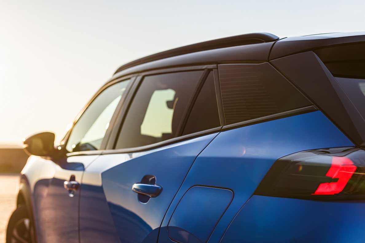 The large-diameter wheels (690mm), wheel arches, vertical grille and belt line mark it out as an SUV, while the front and rear light signatures anchor it firmly in the world of the PEUGEOT brand.