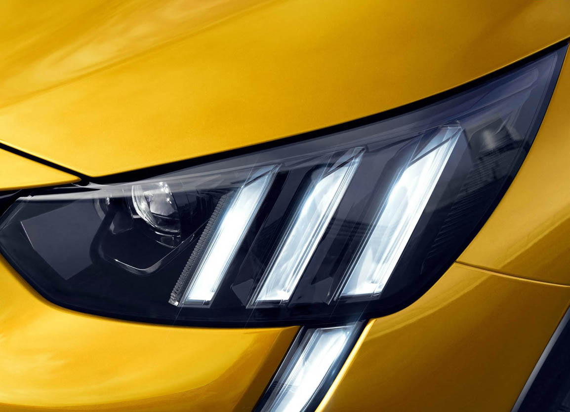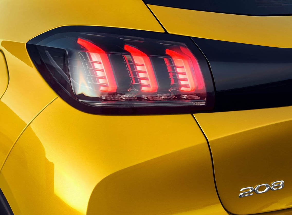 Immediately recognisable, the front end is a clever blend echoing the visual signature of the lower section of new Peugeot and the Full LED 3-claw headlight signature (according to version). The front bumper is designed as a single contour containing a perfectly-integrated, single outlet radiator grill in the centre, bearing the iconic Peugeot Lion. The tip of the bonnet shows off the 208 badge.