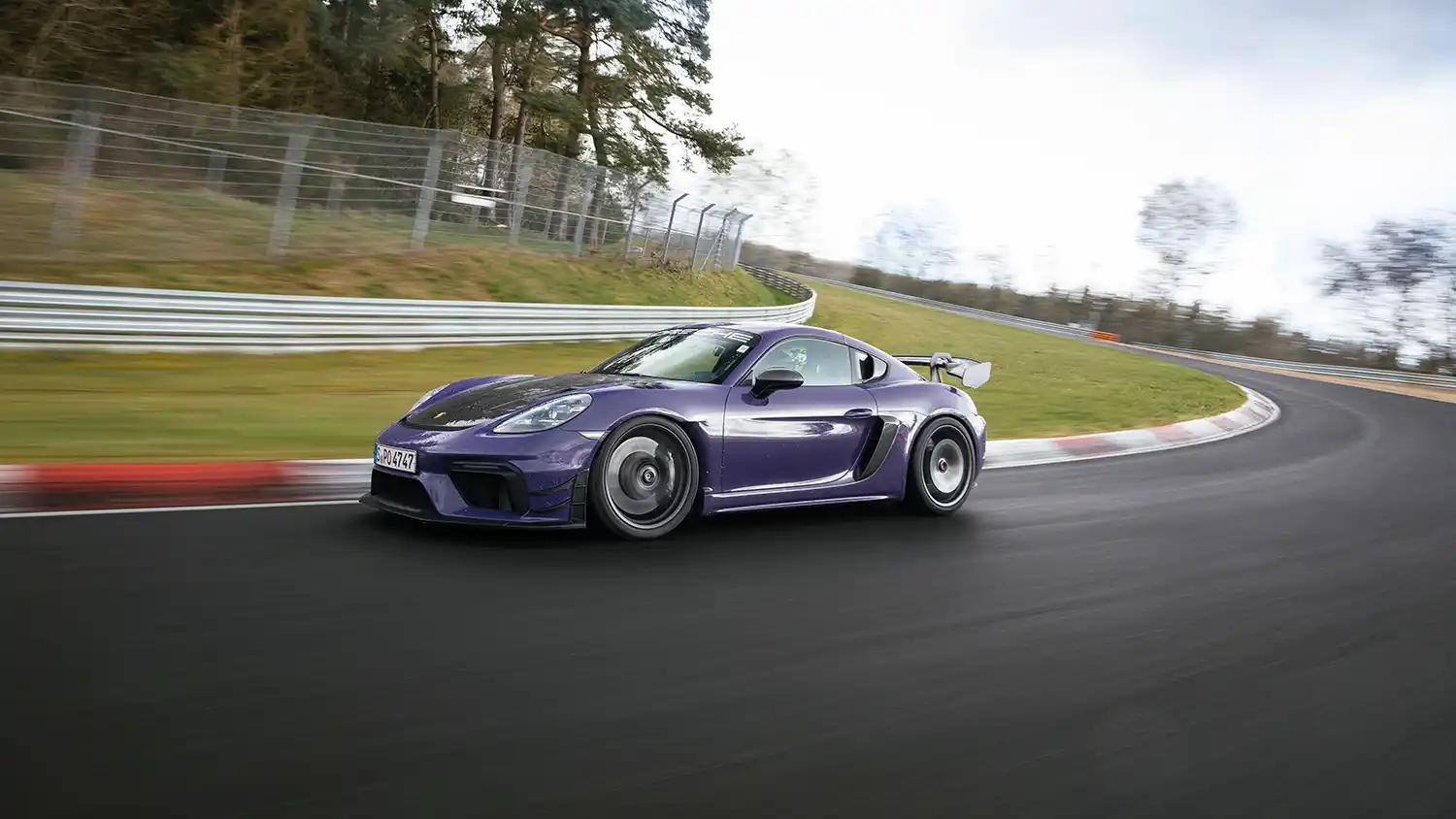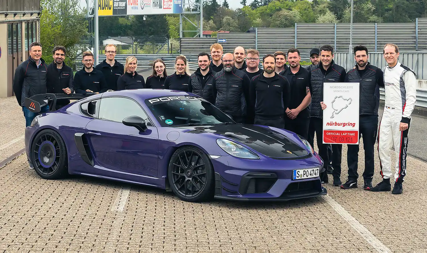 The 718 Cayman GT4 RS with the Manthey Kit is able to demonstrate its full potential on the Nürburgring Nordschleife, the traditional benchmark for sports cars at Porsche. With Porsche brand ambassador Jörg Bergmeister at the wheel, the modified GT sports car completed the 12.9 miles course in the Eifel at 18 degrees Celsius under an overcast sky in 7:03.121 minutes – over six seconds faster than the series-production 718 Cayman GT4 RS did the previous year. Both cars were equipped with the optional Michelin Pilot Sport Cup 2 R tires. The lap time was certified by a notary on site.