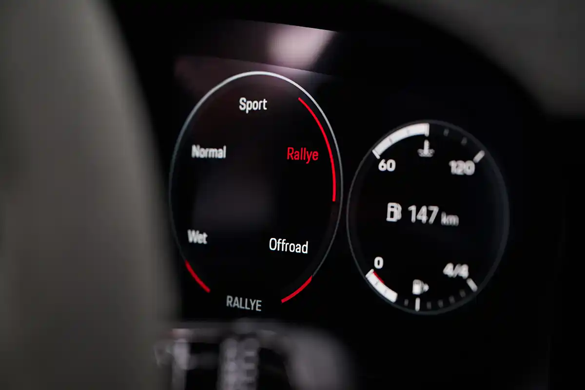 As standard, the engine comes with an eight-speed PDK and Porsche all-wheel drive. The standard equipment also includes rear-axle steering, the engine mounts from the 911 GT3, and PDCC anti-roll stabilisation. The interplay of all the components results in the 911 Dakar being just as dynamic on sand and loose surfaces as it is on the Nürburgring Nordschleife. Maximum off-road performance is also ensured by two new driving modes, which can be selected using the rotary switch on the steering wheel. Rallye mode is ideal for loose, uneven surfaces and features rear-focused all-wheel drive. In off-road mode the high clearance is activated automatically. This mode is designed for maximum traction on difficult terrain and on sand. Both of the new driving modes also feature the new Rallye Launch Control, which enables impressive acceleration on loose surfaces and allows wheel slippage of around 20 per cent.