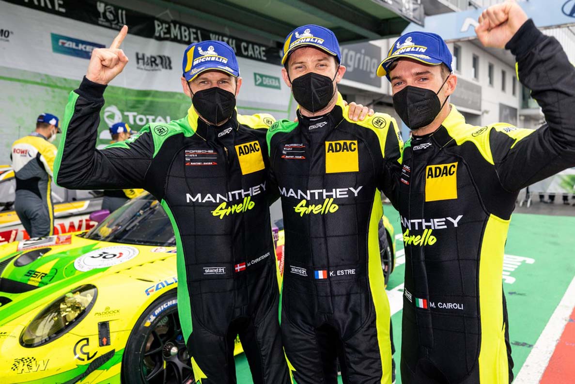 At the restart shortly before midday on Sunday, it was again Kévin Estre who treated around 10,000 spectators in the grandstands to some gripping racing. At the wheel of the so-called “Grello” Porsche 911 GT3 R, the 32-year-old came from sixth place to the front of the field and handed the car off to Michael Christensen in first place. The Dane turned heads with consistently fast laps and maintained the lead in the No. 911 car. Estre successfully fended off all attacks in the last hour of racing to take the flag by a margin of 8.817 seconds. In addition to Estre, Christensen and Cairoli, Lars Kern also competes for the Manthey squad, however the experienced Porsche development driver was unable to contest the race on account of ill health.