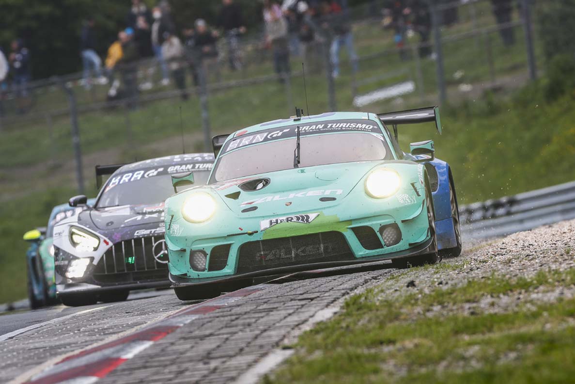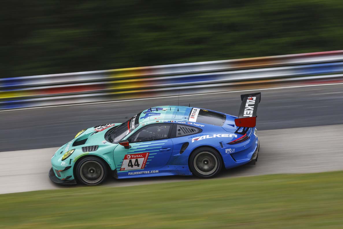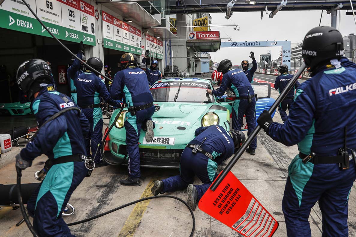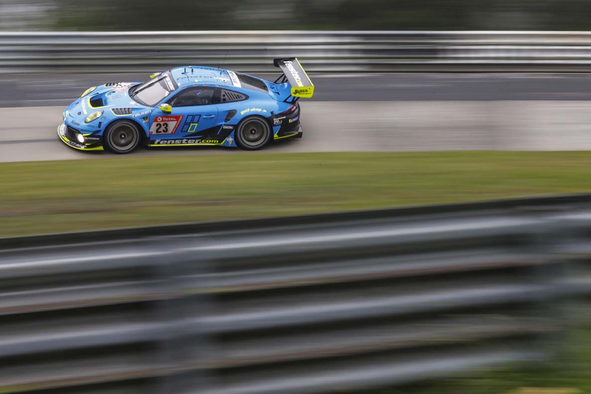 The Falken Motorsport team battled for a podium spot to the last lap in the No. 44 car but narrowly missed out on a podium result. Germany’s Sven Müller, the two Austrians Martin Ragginger and Klaus Bachler as well as Alessio Picariello from Belgium finished in fourth place. The No. 33 sister car achieved ninth place. Eighth went to the Porsche 911 GT 3 R fielded by Huber Motorsport with the German drivers Stefan Aust, Philipp Neuffer, Nico Menzel and Marco Seefried. The outfit under team boss Reinhard Huber remained in the top ten over the entire distance and even spent some laps in the lead. In the Pro-Am class, Huber Motorsport was the unchallenged leader.