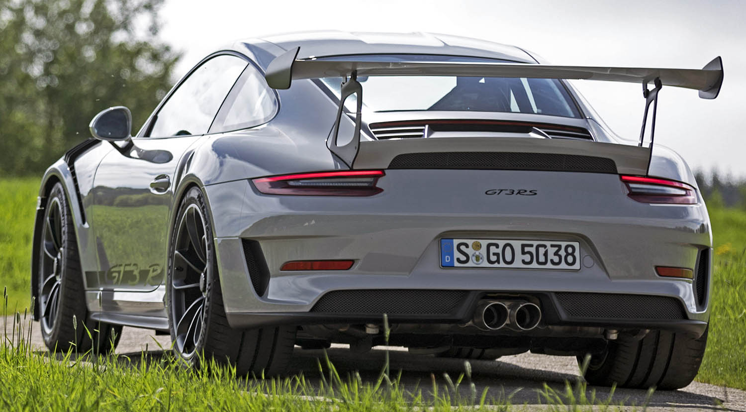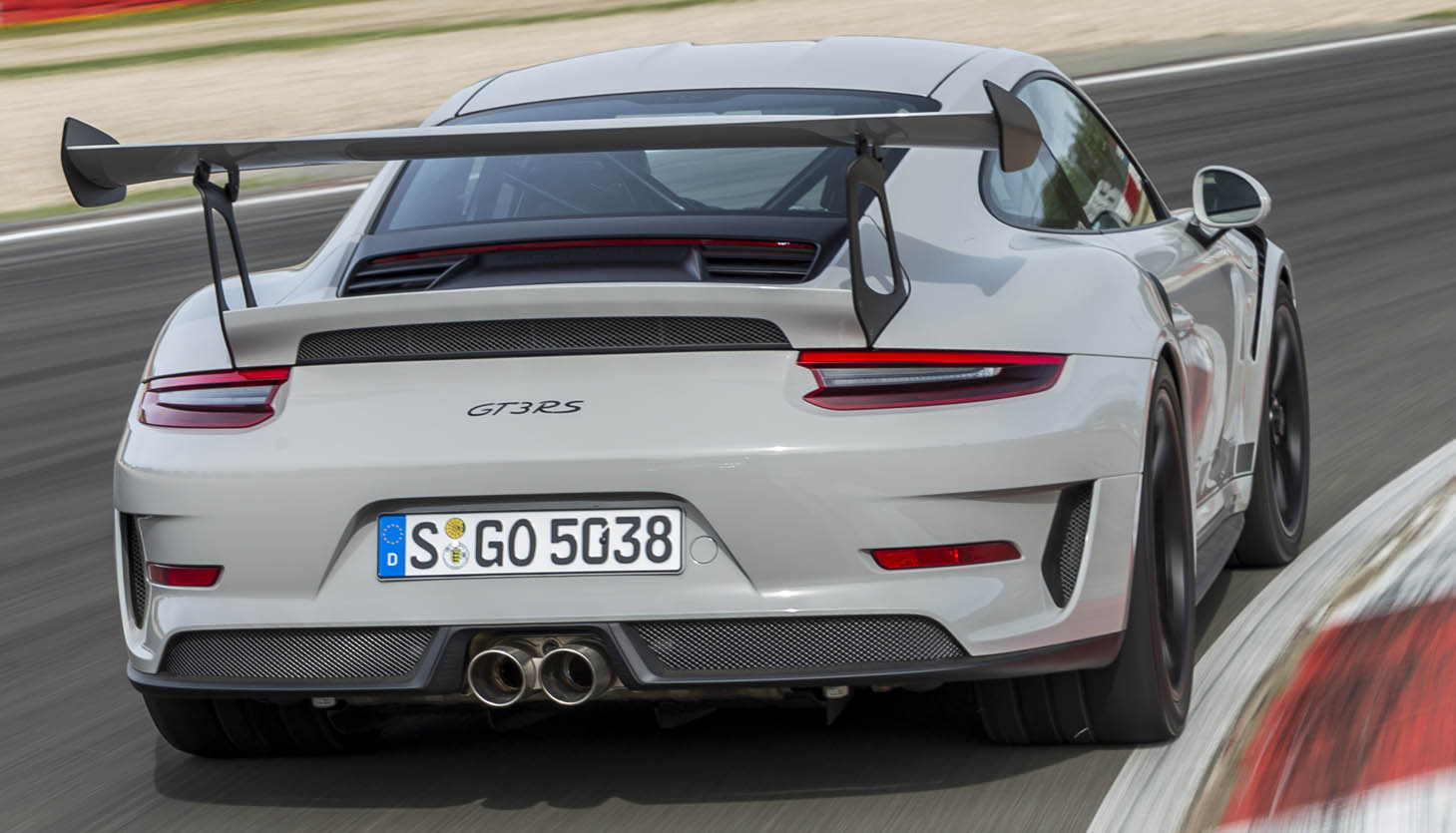 As standard, the Porsche 911 GT3 RS features a sports exhaust system with rear silencer and two central tailpipes made from titanium. The large volume of the exhaust system reduces the exhaust gas pressure and thus increases performance.